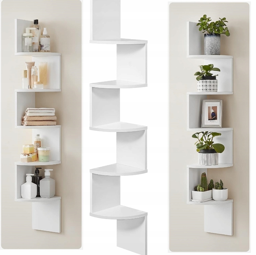НАСТЕННАЯ ПОЛКА ПОДВЕСНАЯ УГЛОВОЙ КНИЖНЫЙ ШКАФ БЕЛАЯ 5 ПОЛОК СОВРЕМЕННЫЙ ДИЗАЙН