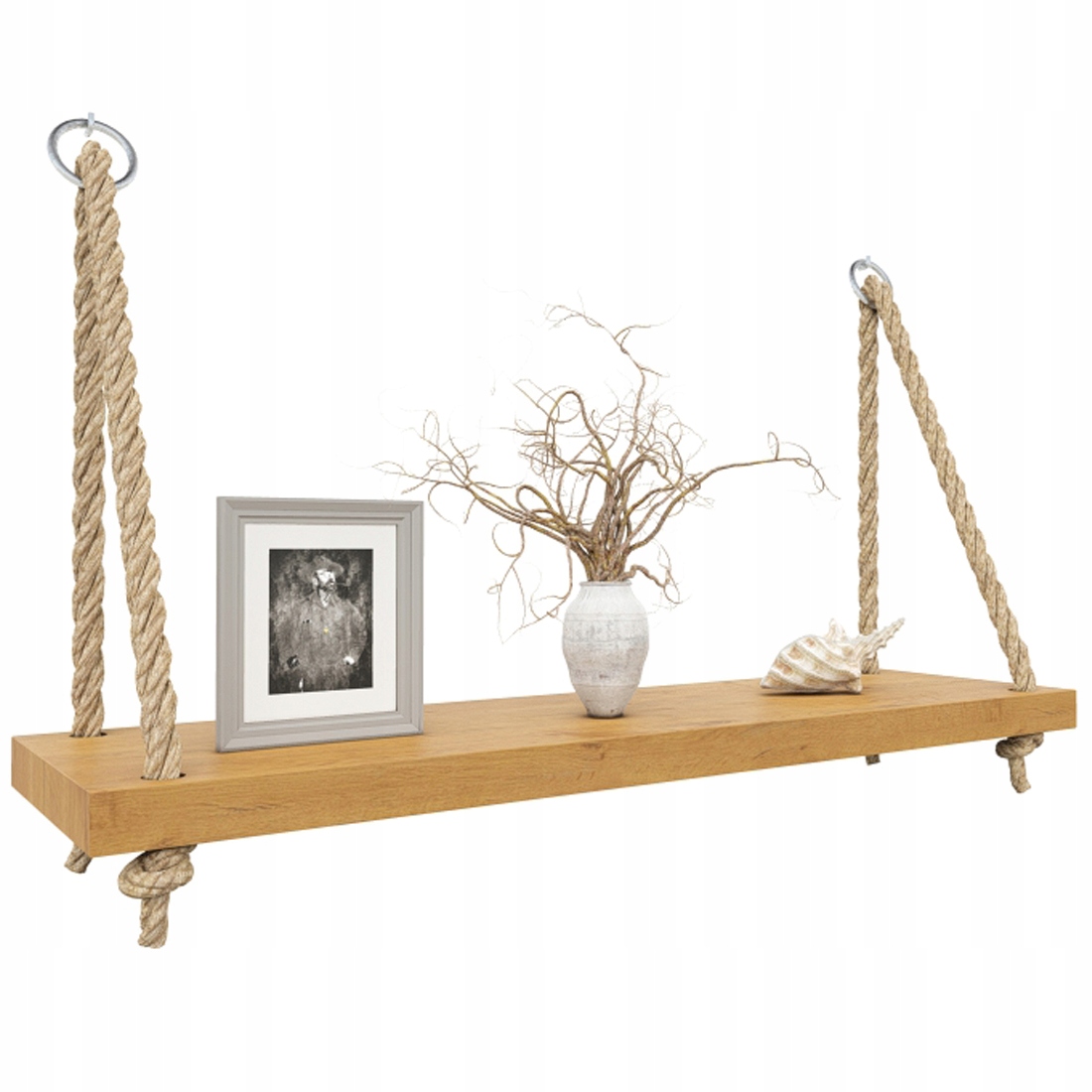 Наши полки – незаменимый элемент любого дизайна интерьера. Крепление на джутовых веревках позволяет им идеально вписаться в скандинавскую, деревенскую и современную комнату.