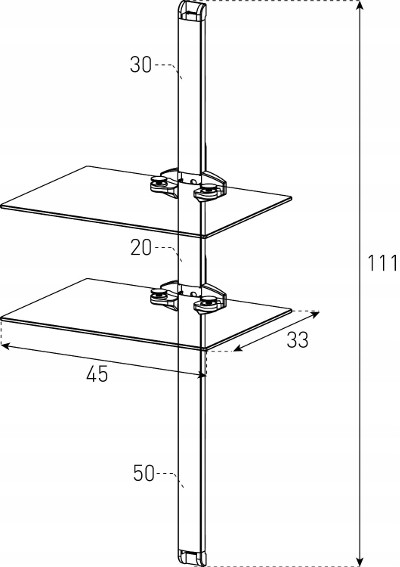 - в двух цветах: черная полоска с черными полками, серебристая полоска с прозрачными полками. < /ul>