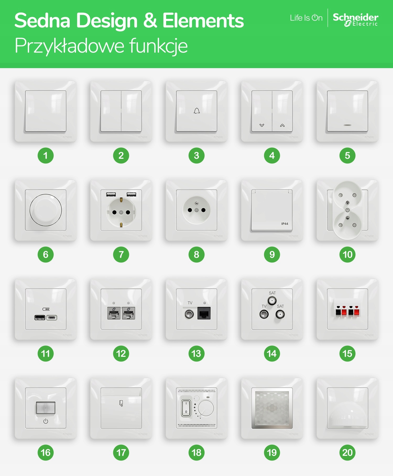 Sedna Design & Elements – это новая серия инновационных разъемов и розеток с изысканным внешним видом. В ее предложение входят интеллектуальные решения, которые значительно повысят ваш комфорт и обеспечат безопасность. К ним относятся: устройства для управления освещением, жалюзи, температурой.