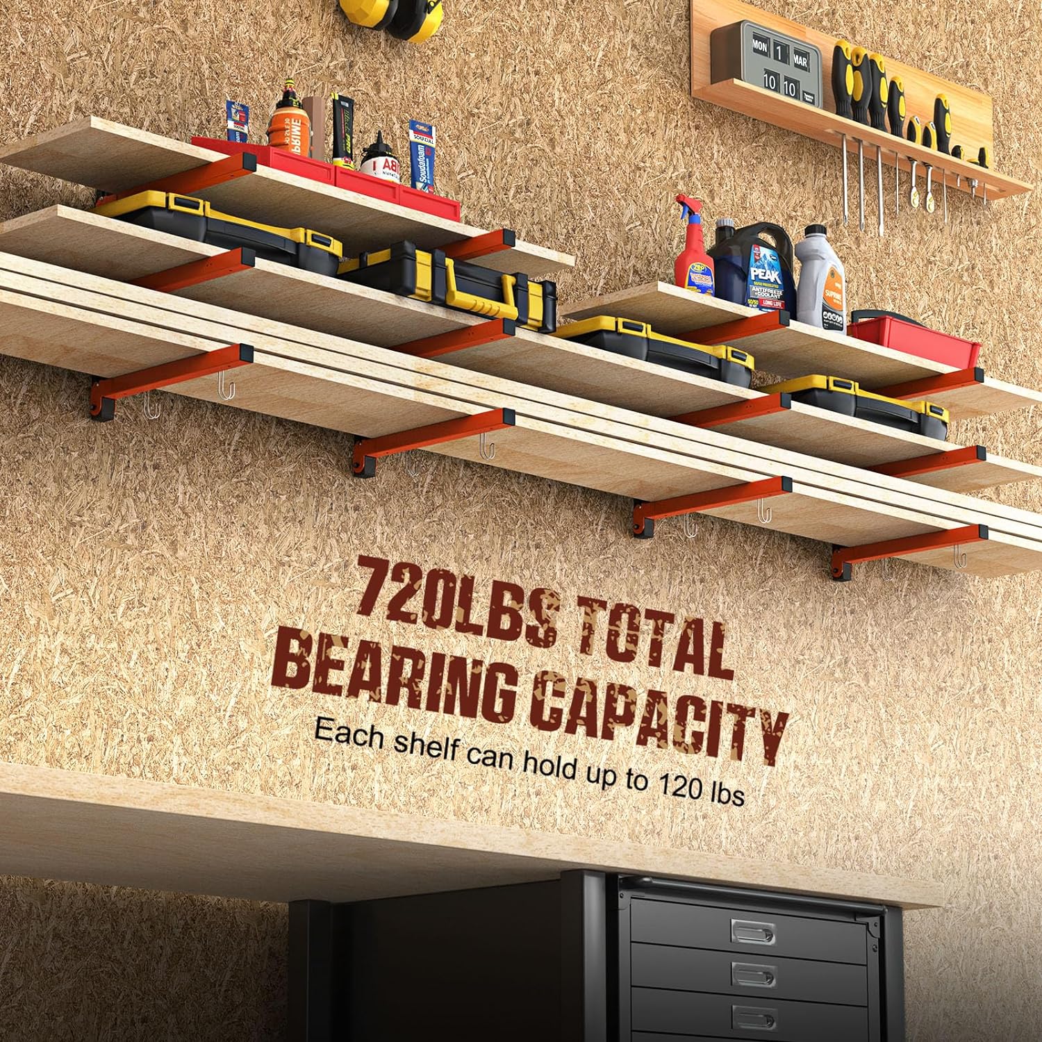Книжный шкаф : специально разработанный для хранения длинных объектов, таких как дерево, инструменты, коробки, лестницы, трубы, палочки водолазки или лыжное оборудование, чтобы создать дополнительное пространство дома, гаража, подвалов и даже снаружи. Из материалов, устойчивых к царапинам, нагрузкой на уровне 54 кг до уровня (6 уровней) каждая 3-уровневая древесная подставка может содержать до 320 кг, что позволяет легко хранить тяжелые и большие объекты для повседневной работы.