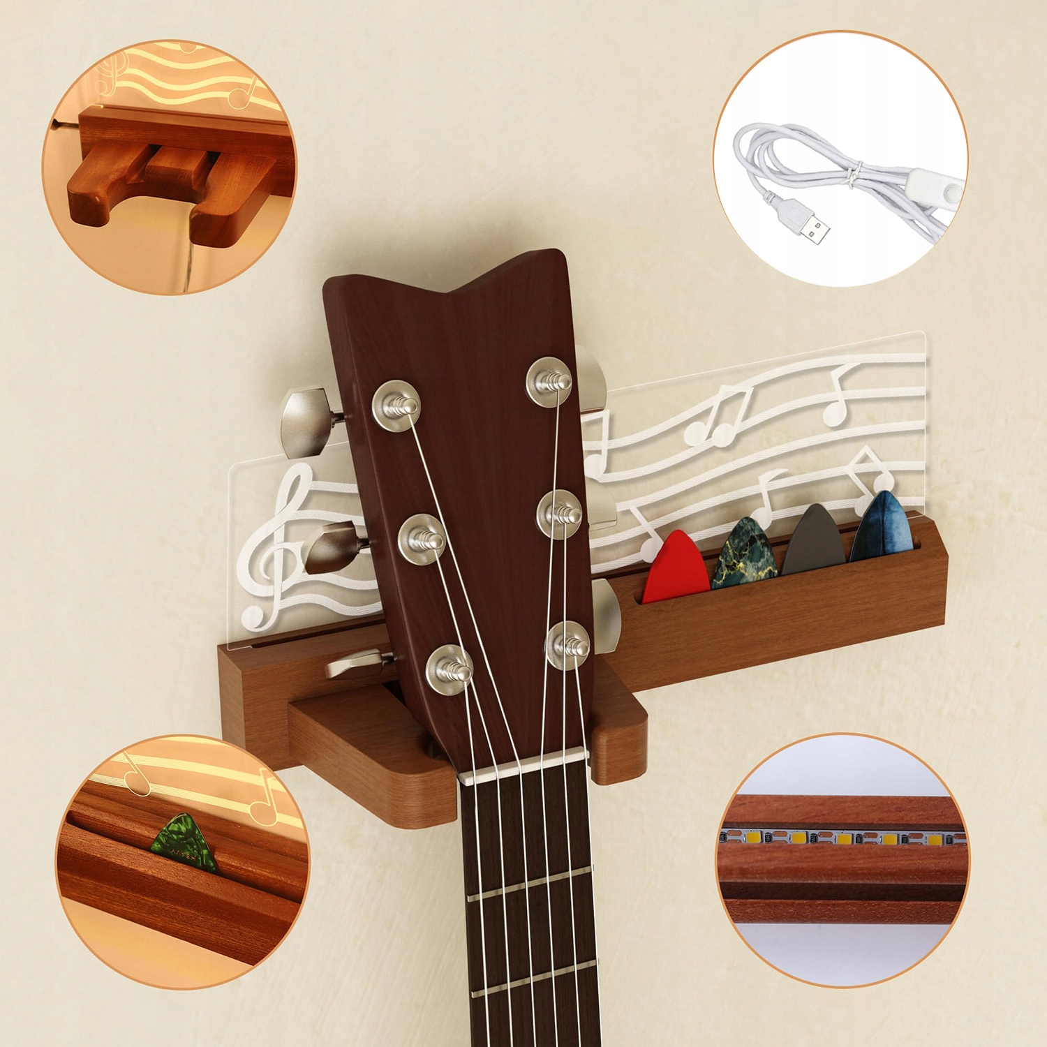 Оснащенная USB-портом, просто подключите подставку с помощью прилагаемого USB-кабеля, чтобы показать гитару.