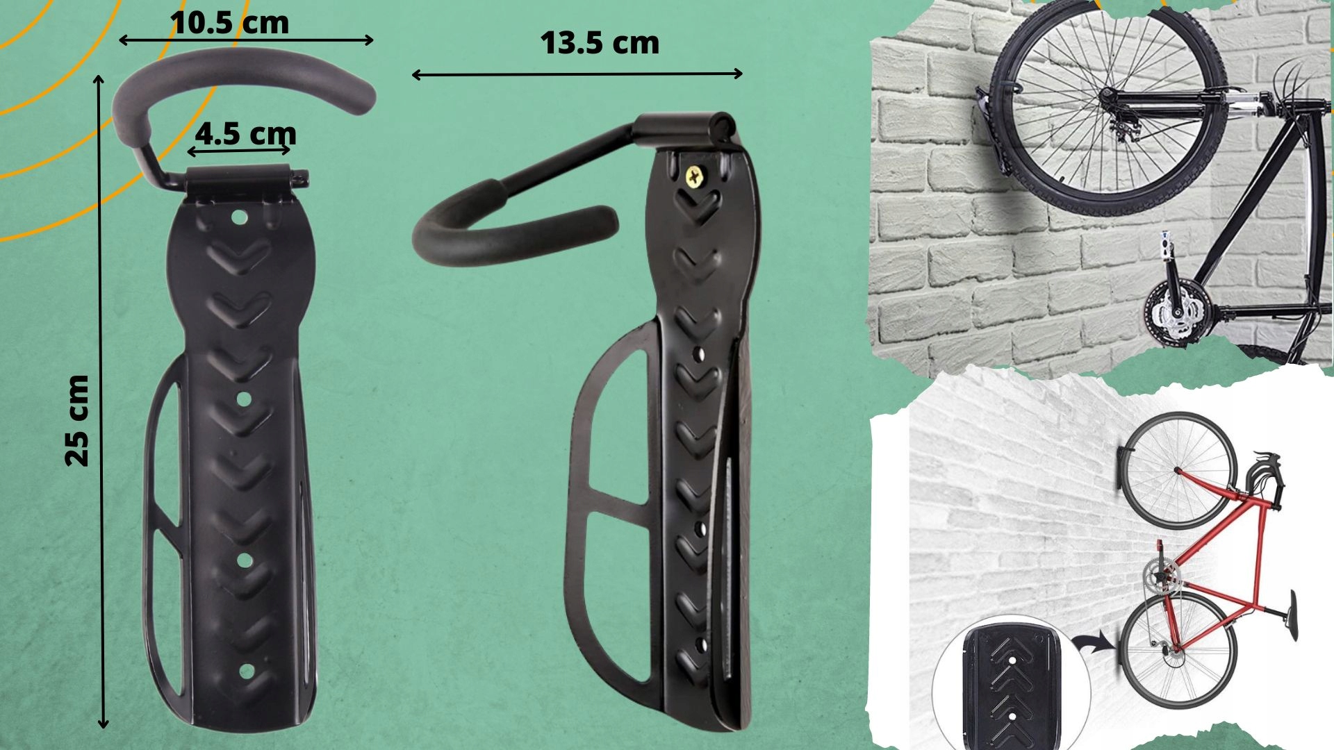 - ✅Универсален – подойдет к различным велосипедам и всем размерам колес. Крючок с прочной железной конструкцией хорошо сделан и поэтому надежно удерживает велосипеды.