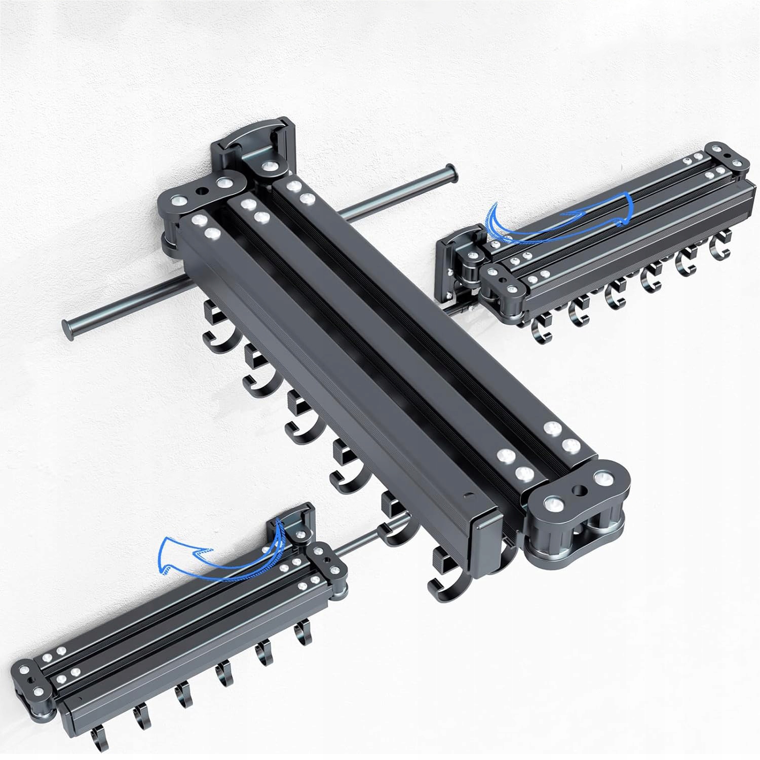 🥼🩳 СКЛАДНАЯ, СКРЫТАЯ В НАСТЕНУ СУШИЛКА ДЛЯ ОДЕЖДЫ, ЭКОНОМЯЩАЯ МЕСТО, ПОДХОДИТ ДЛЯ РАЗЛИЧНЫХ СЛУЧАЕВ (ЧЕРНАЯ, СКЛАДНАЯ, 3 СЕКЦИИ)🥼🩳