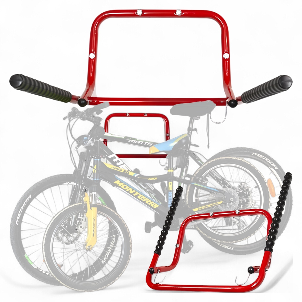 Стальная конструкция обеспечивает устойчивость и долговечность, а покрытые резиной ручки защищают велосипед от царапин и скольжения. Благодаря возможности повесить два велосипеда - вы получаете в два раза больше места и порядка. Идеально подходит для гаражей, подвалов и даже элегантных интерьеров!