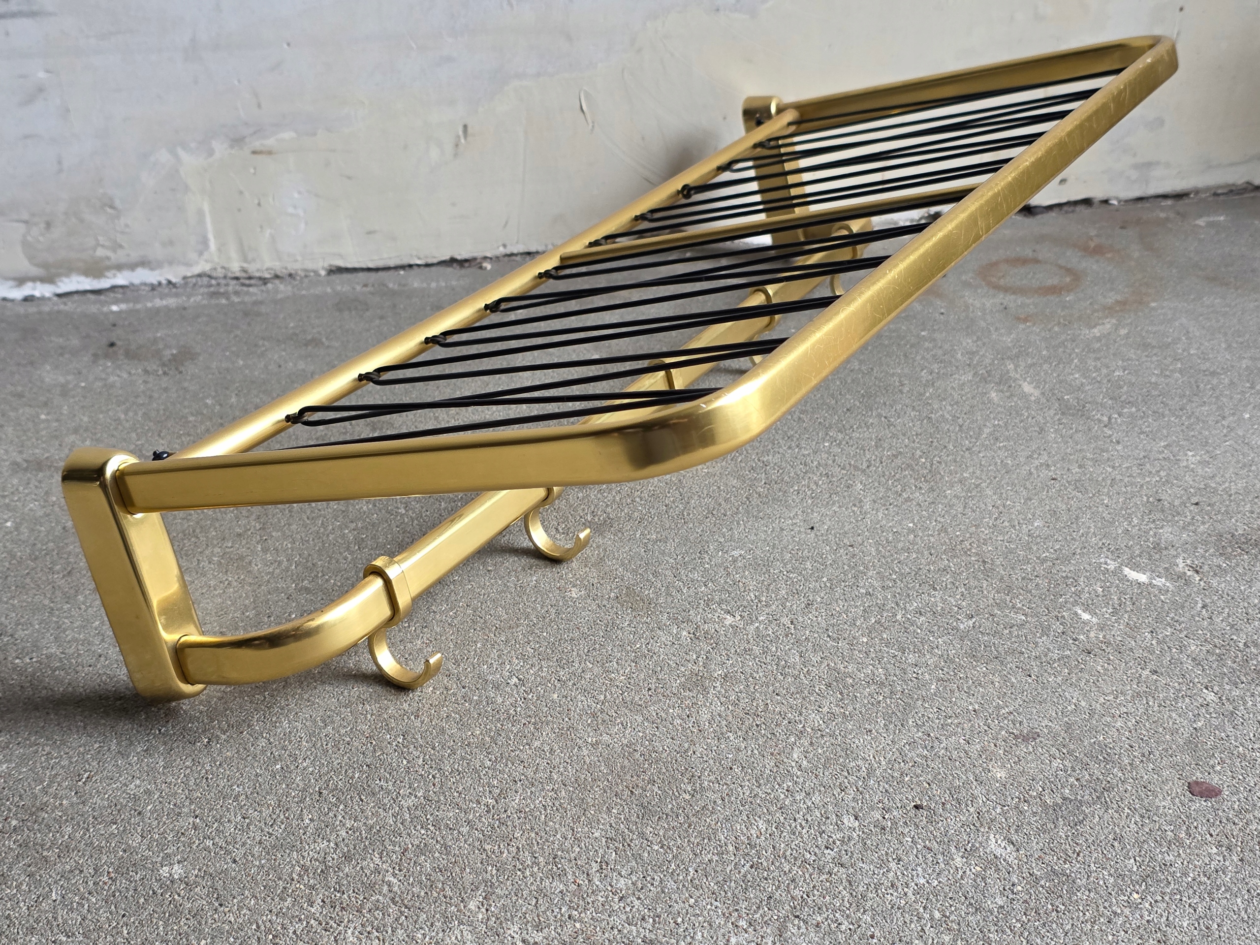 Вешалка из алюминия светло-золотистого цвета.