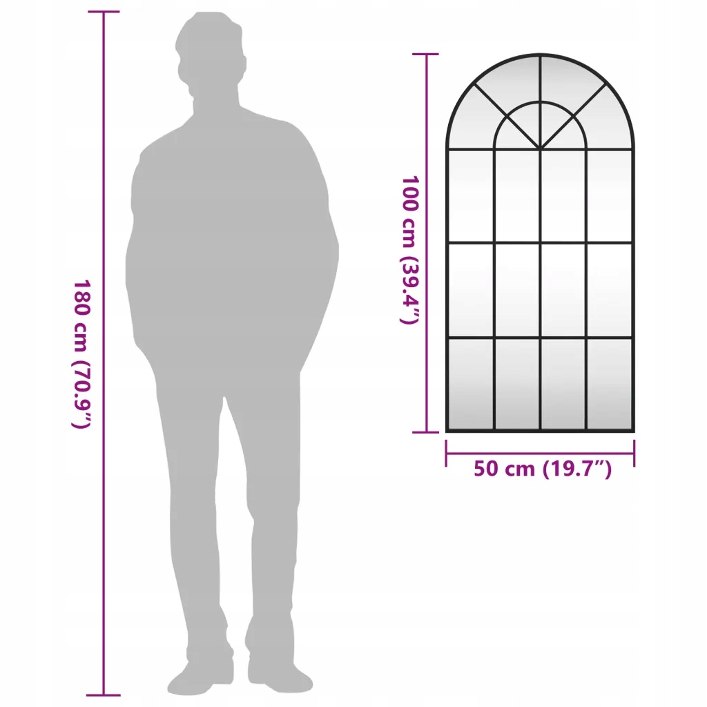 Стеновое зеркало, черное, 50x100 см, заканчиваемое луком, железо