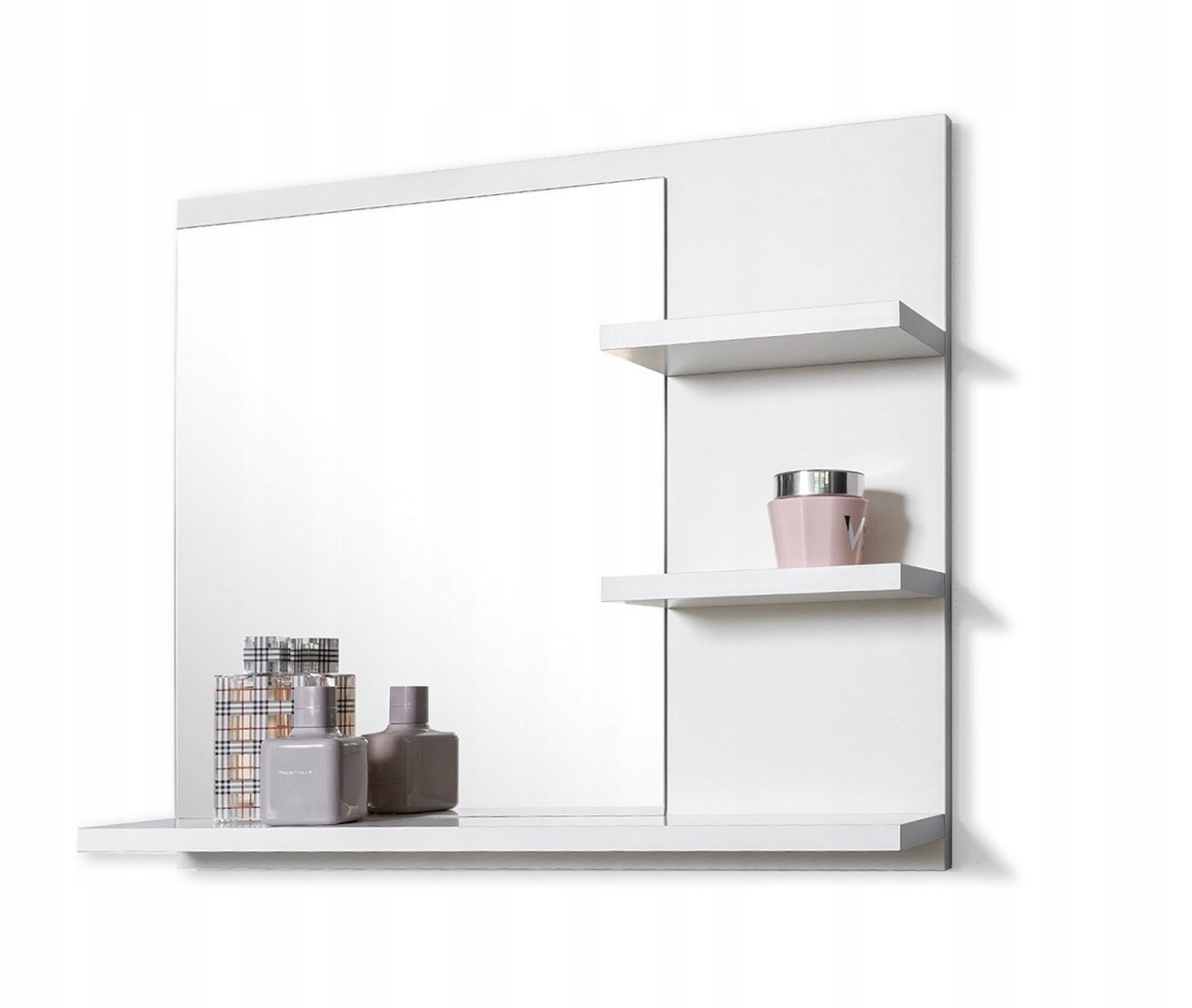 - Высоко -качественное ламинат, подходящее для среды ванной комнаты - высокая устойчивость к влаге и царапинам. Благодаря полкам зеркало может действовать как шкаф для ванной комнаты или настенная полка - лучшее решение для повседневных предметов, которое всегда будет под рукой. Хорошее место для зубных щетков, духов, аксессуаров для ванной комнаты. Продукт имеет сертификат FSC