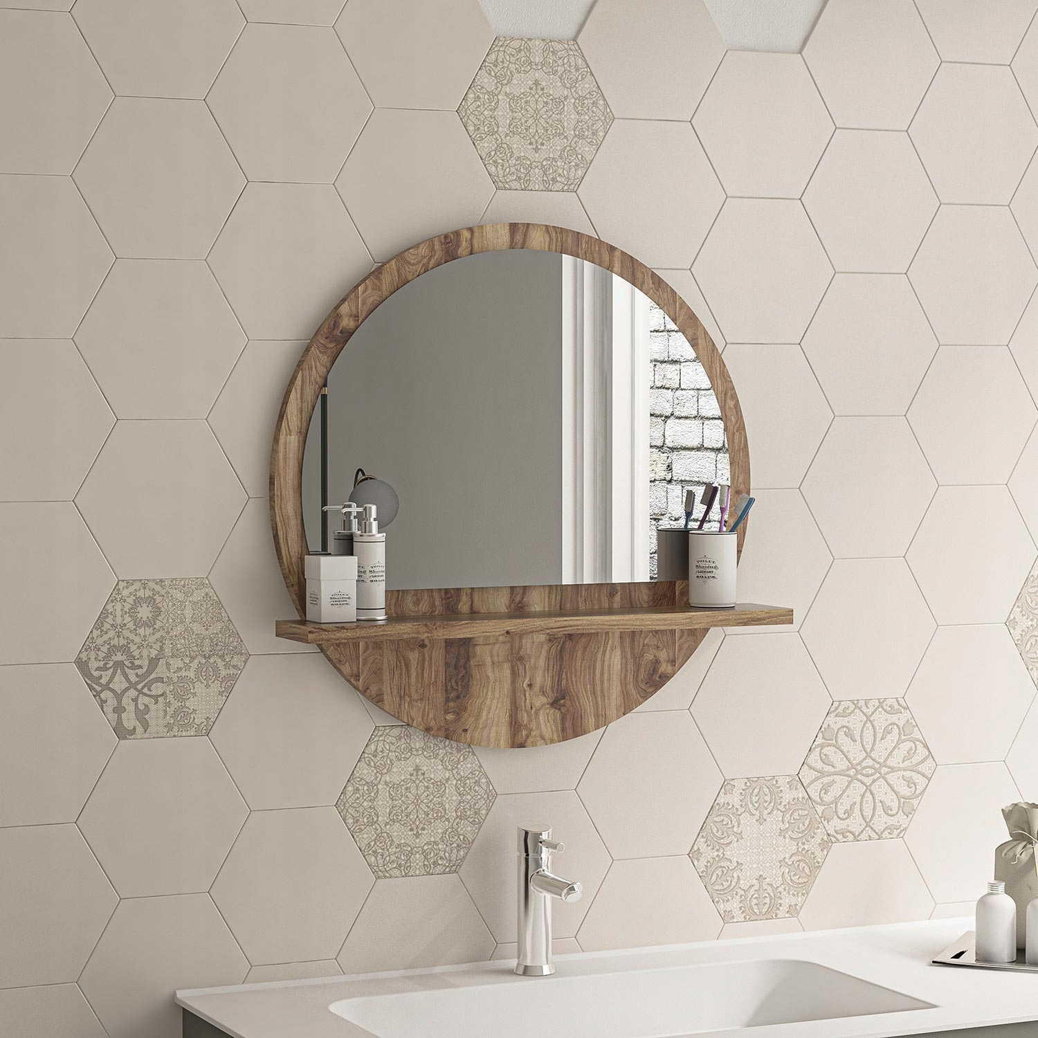 <ул>Украсьте свою ванную комнату нашим зеркалом с полкой, которое придаст ей элегантный стиль. Зеркало для ванной тщательно изготовлено из высококачественной ДСП, что обеспечивает его долговечность и прочность.