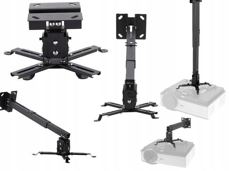 Универсальная конструкция держателя позволяет использовать его в любых условиях, независимо от того, хотим ли мы разместить проектор прямо у потолка, на большем расстоянии от потолка или у стены.