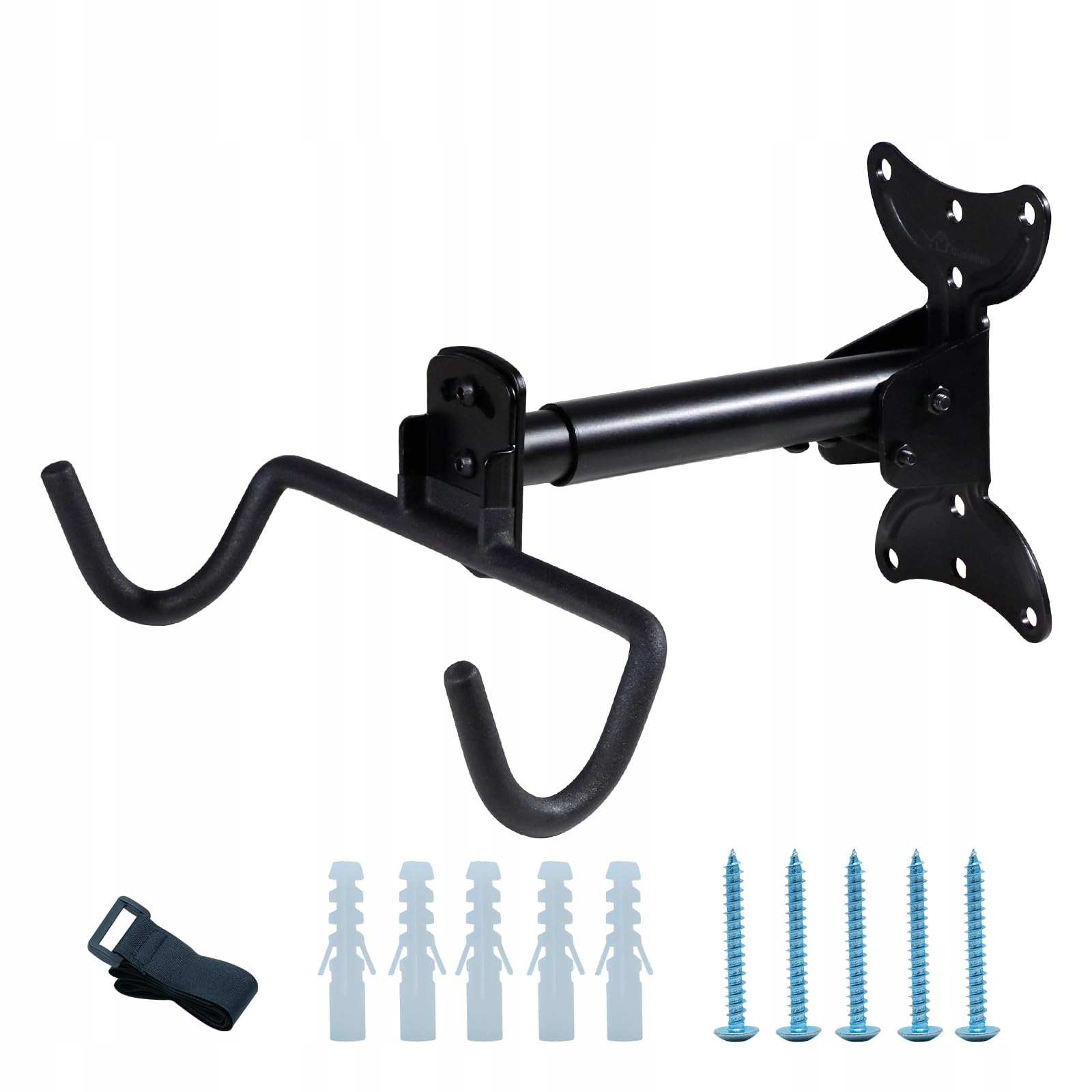 Поворотный и выдвижной: угол и расстояние от стены можно при необходимости регулировать, а ремень безопасности позволяет безопасно повесить велосипед и облегчает доступ.