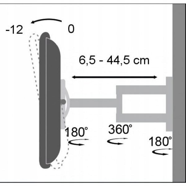 Настенное крепление для ЖК/светодиодов, 19–37 дюймов, двойной кронштейн, регулируемое, белое – Обеспечивает безопасный монтаж светодиодного/ЖК-дисплея или телевизора на стене – Стальная конструкция гарантирует максимальную безопасность – Крепление дисплея в стандарте VESA - Двухшарнирная стрела с регулируемым расстоянием от стены - Возможность регулировки угла наклона - Возможность регулировки вращения в горизонтальной плоскости - Идеально подходит для использования дома, в офисе и для коммерческих установок