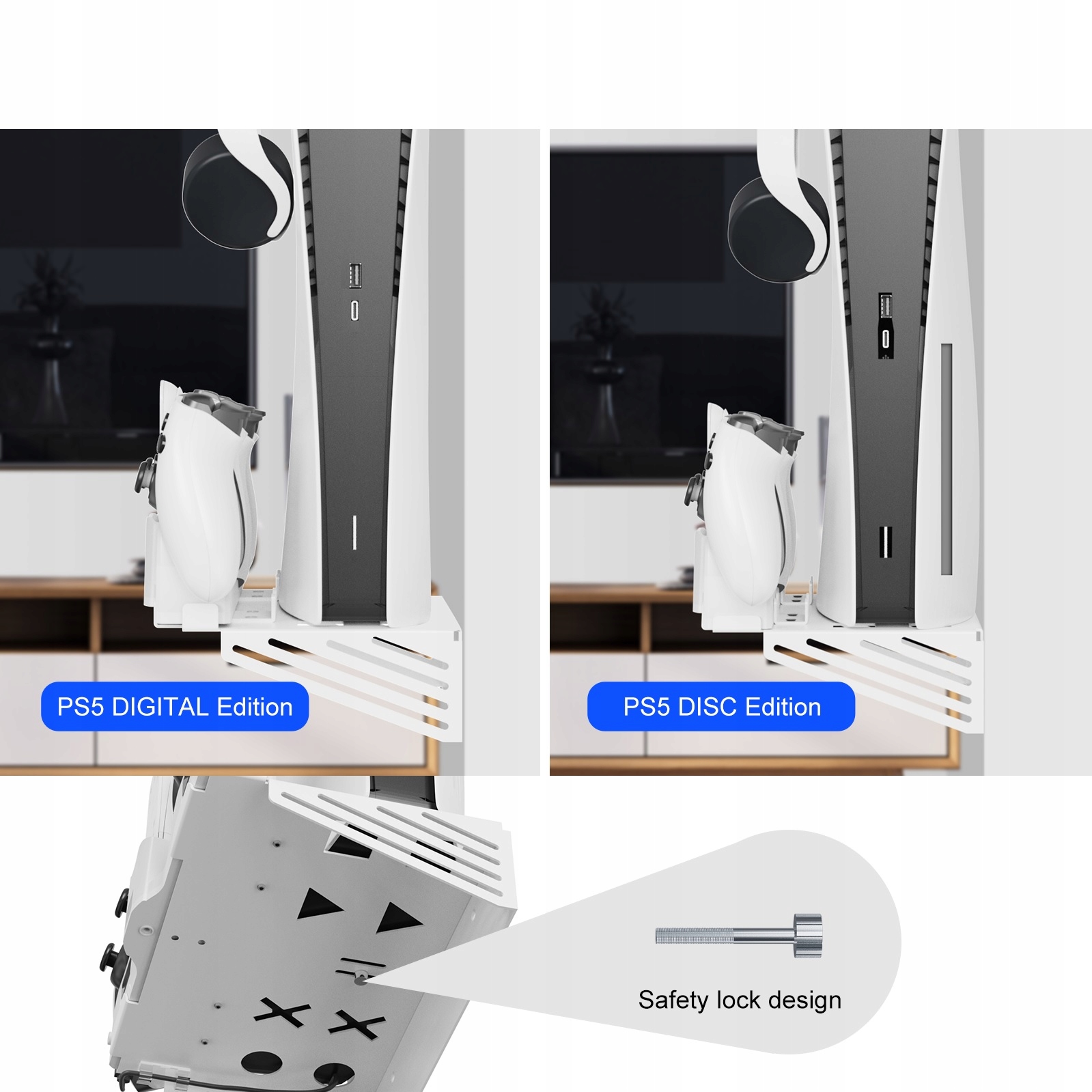 Больше не нужно перемещать консоль и занимать место на столе или столе под телевизором. Просто закрепите подставку на стене, чтобы разместить консоль, пэды, наушники и пульт дистанционного управления в нужном месте.