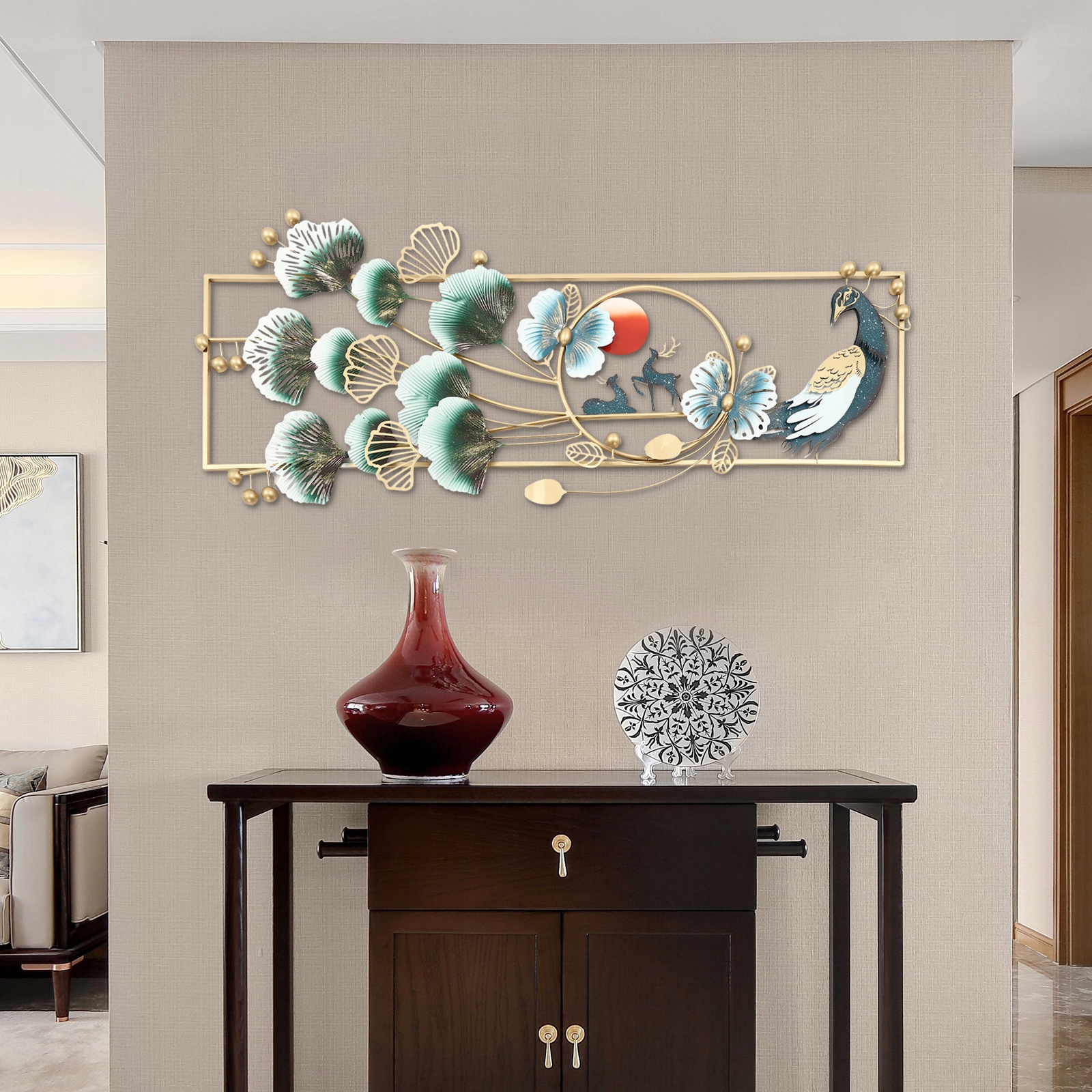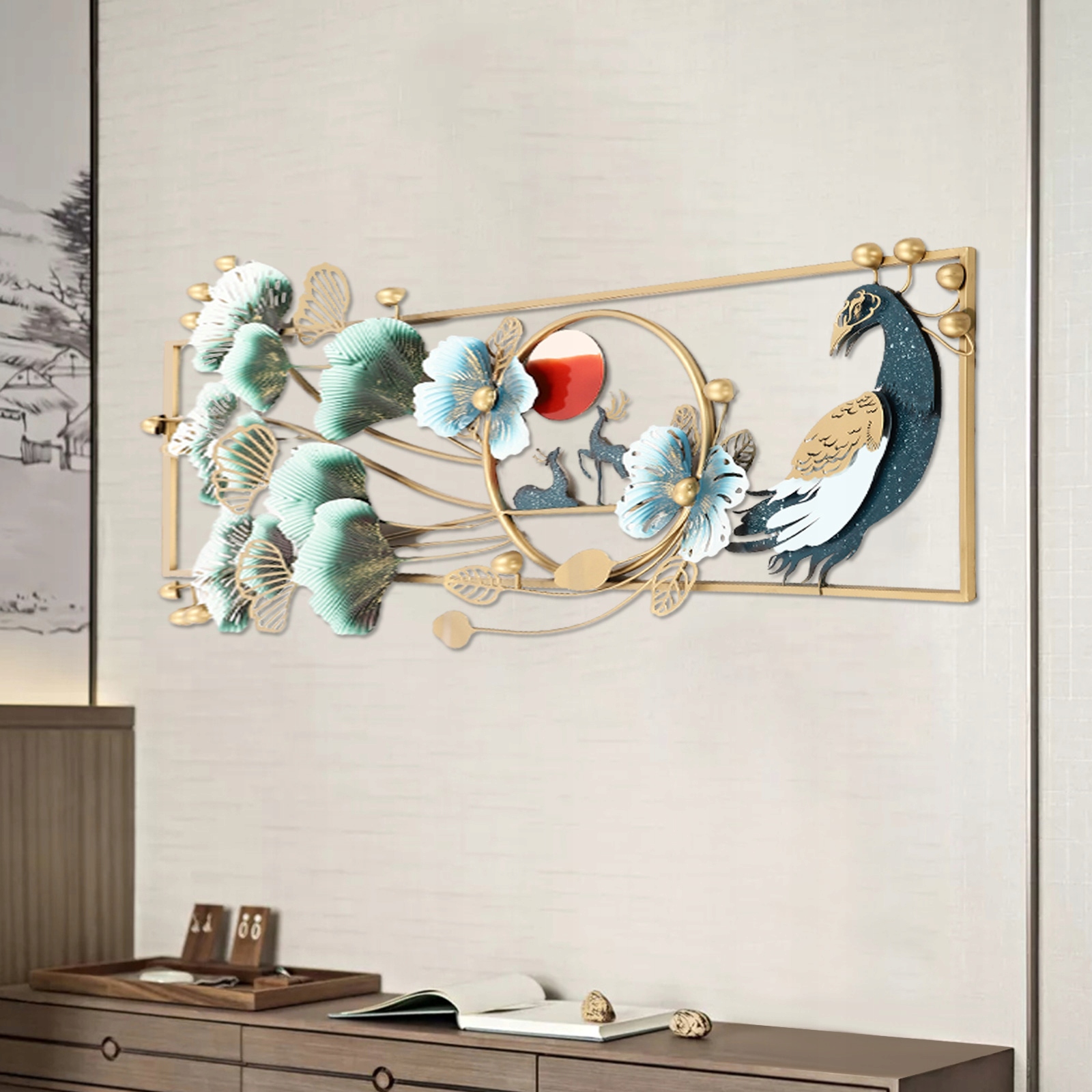 ◾Настенные украшения являются не только органичной частью домашней обстановки, придавая ей культуру и смысл, но также стимулируют воображение людей и усиливают заразительную силу искусства. В этом настенном украшении с изображением животных используются 3D-линии, которые обогащают переплетающиеся слои животных и гинкго билоба, обеспечивая более комфортное визуальное восприятие. Его можно красиво повесить в гостиных, спальнях, кухнях, студиях, коридорах, офисах, конференц-залах и залах ожидания, чтобы добавить комнате красоты.