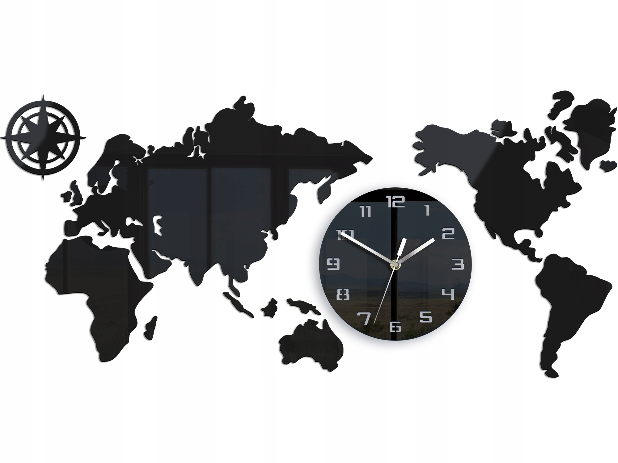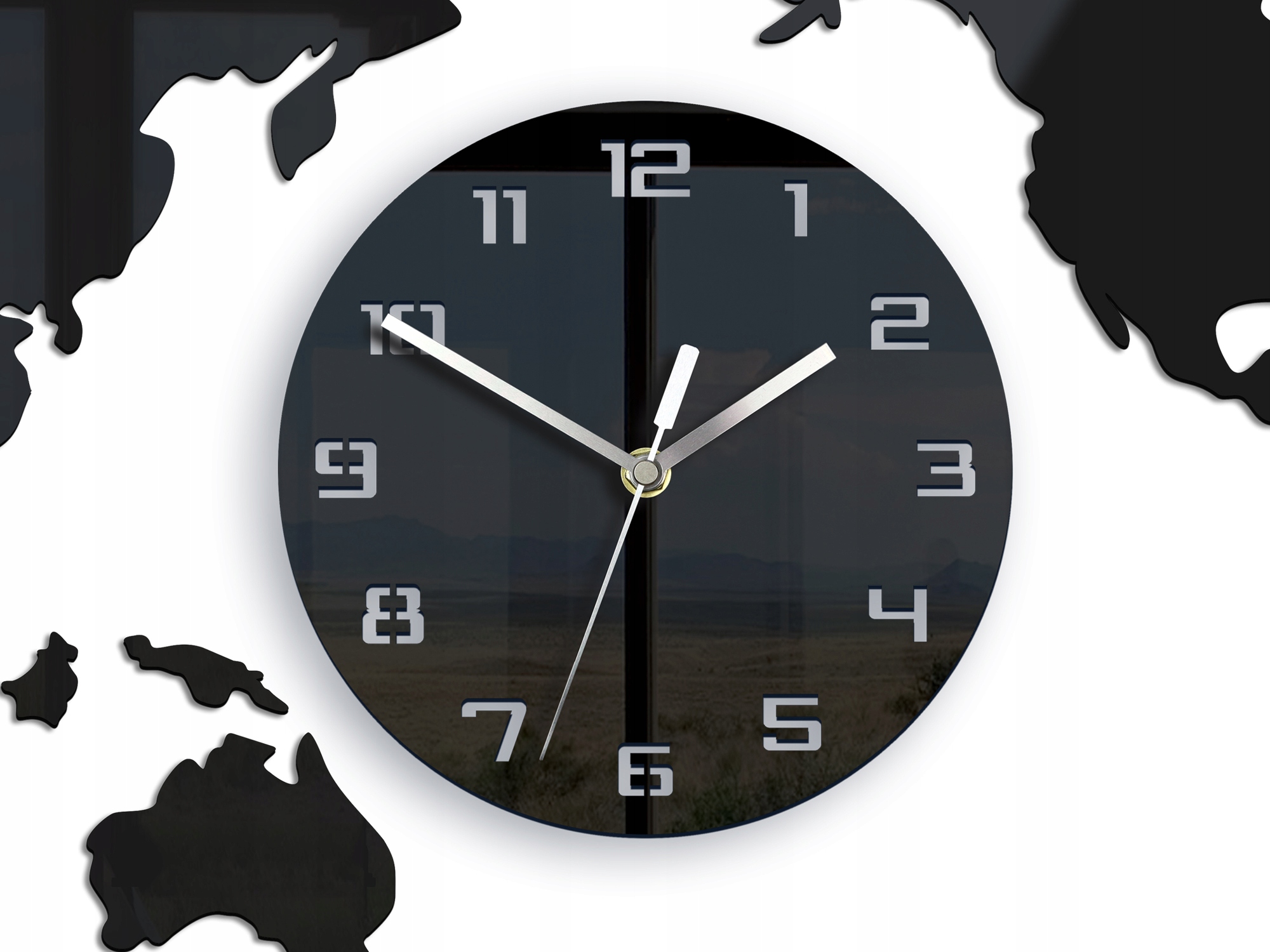 Уникальные и современные настенные часы. Его простота и красота завораживает каждого, кто на него смотрит.Континенты выполнены из черного глянцевого акрилового стекла. Они прекрасно впишутся в любой интерьер, это не только часы, но и красивое украшение вашей гостиной, комнаты или офиса. Идеально подходят в качестве подарка.