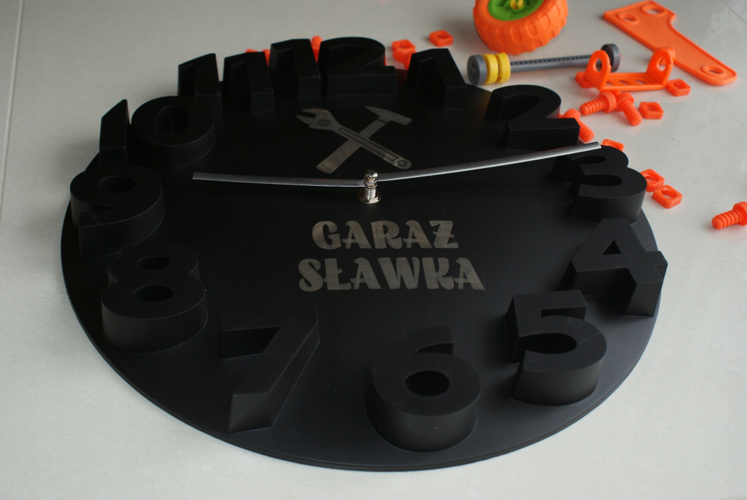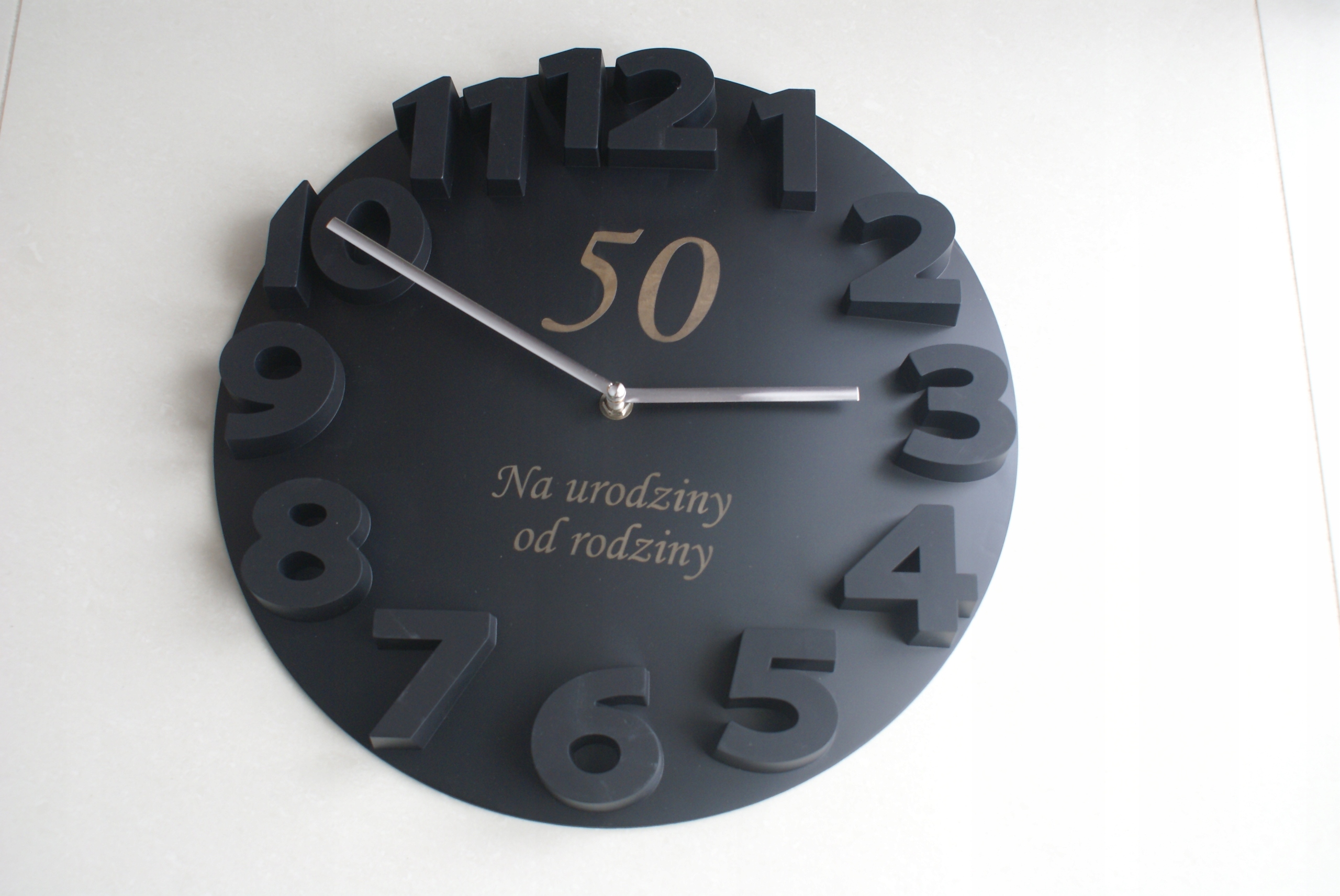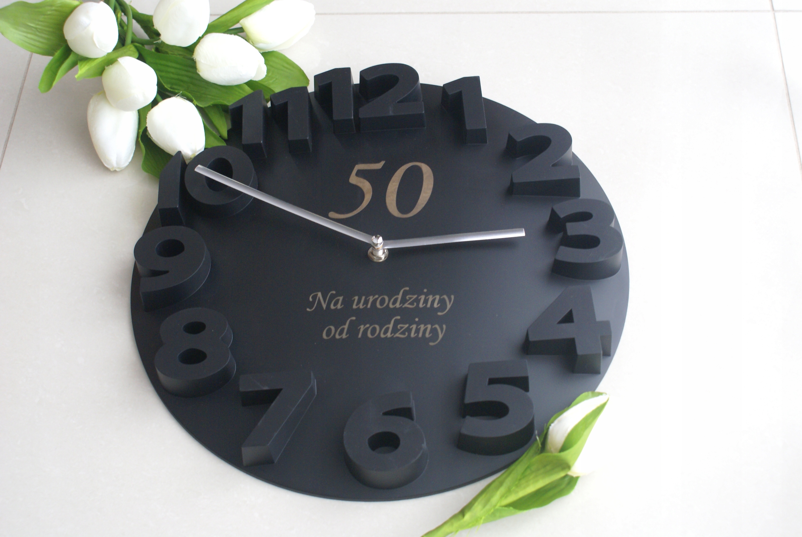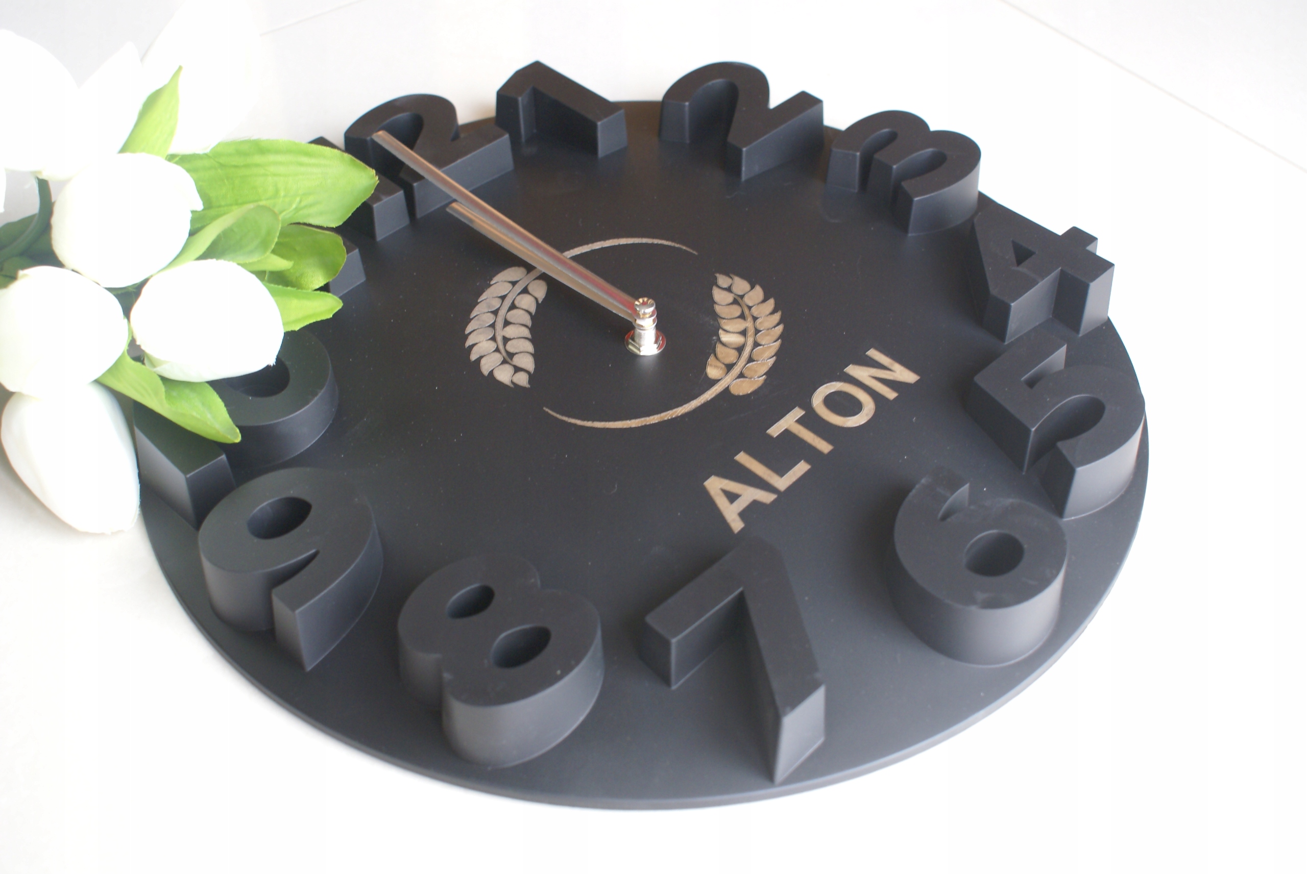 Большие часы современного вида. Благодаря выпуклым цифрам время видно очень четко.