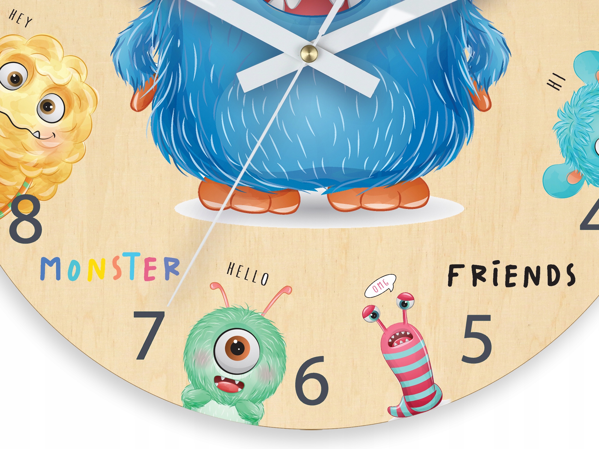 Часы детской комнаты с мотивом монстра. Натуральный диск с часами из березовой фанеры с красивой разноцветной графикой и чистым часовым экраном является гарантией хорошего юмора вашего ребенка. Часы рекомендуются для меньших и больших детей. Интересная идея для подарка на день рождения. p>
