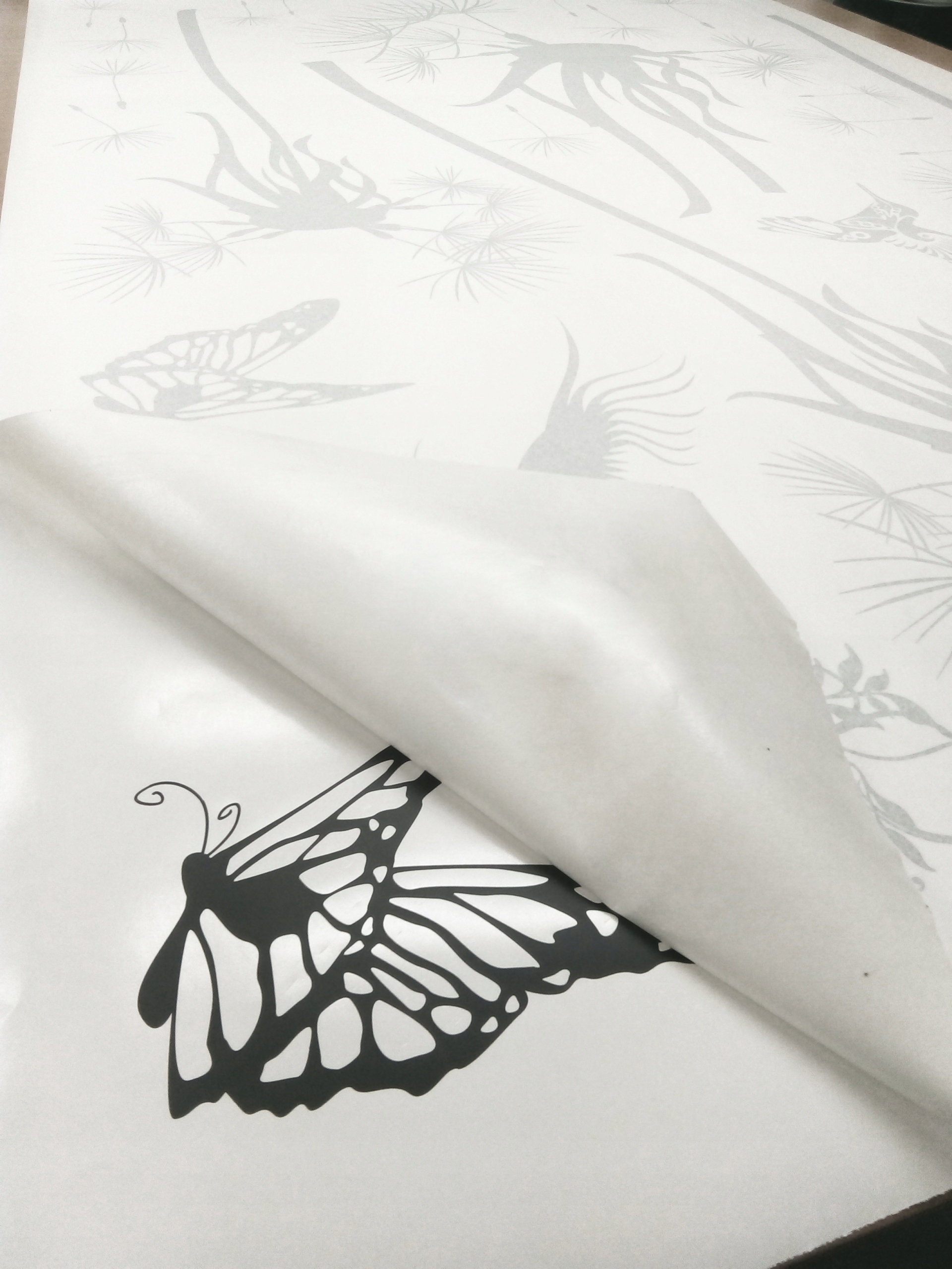 - транспортная бумага применяется к наклейке, , которая облегчает установку. Подробные инструкции прикреплены к продукту.