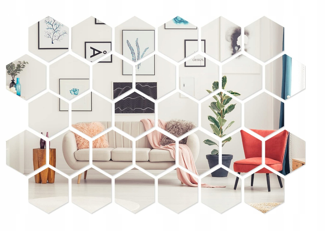 Зеркальные панели шестигранной формы изготовлены из высококачественного акрилового стекла толщиной 1 мм. Размещение нескольких таких зеркал на стене позволяет оригинально обустроить комнаты, придав им необычность и неповторимость.