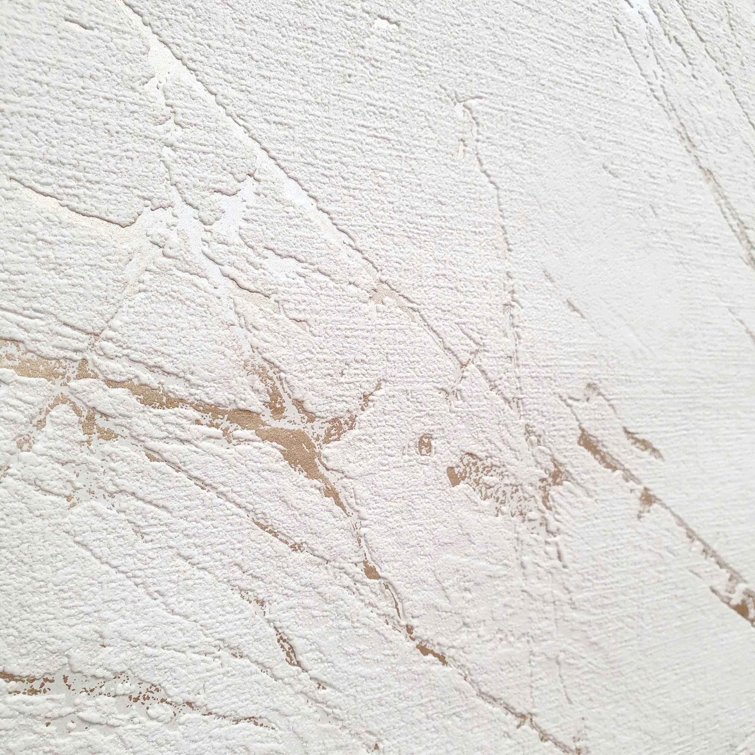 Слегка тисненые обои выпуклой структуры и матового покрытия, местами с сатиновым золотистым отблеском (вогнутые элементы).