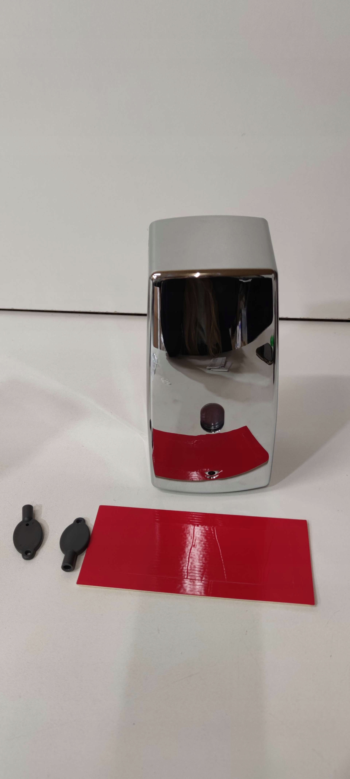 Дозатор мыла не имеет заслонки, закрывающей аккумулятор, поэтому проверить исправность устройства не представляется возможным. Элемент, проверяющий уровень мыла в дозаторе, слегка поврежден.