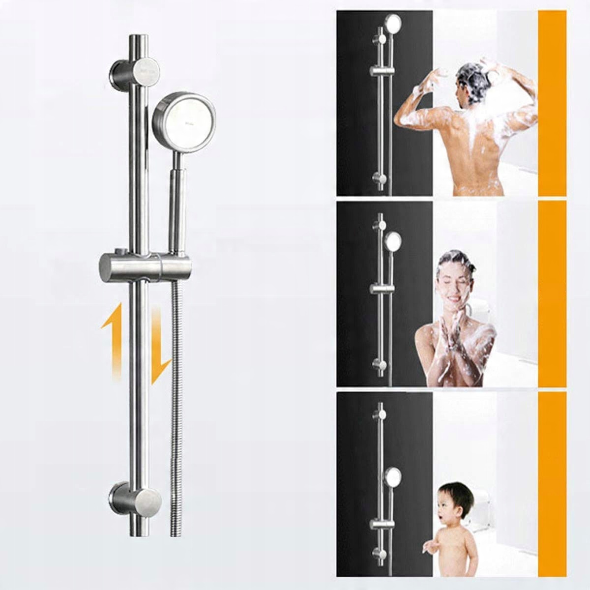 штанга для душа из нержавеющей стали. 66 см - в комплекте Конический ползунок для душа, верхнее регулируемое сверло.