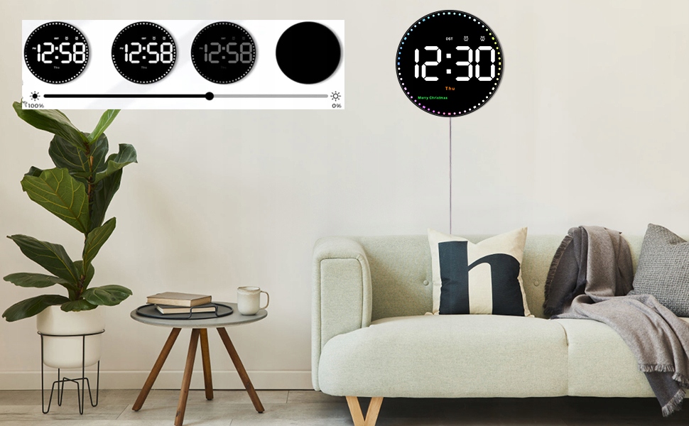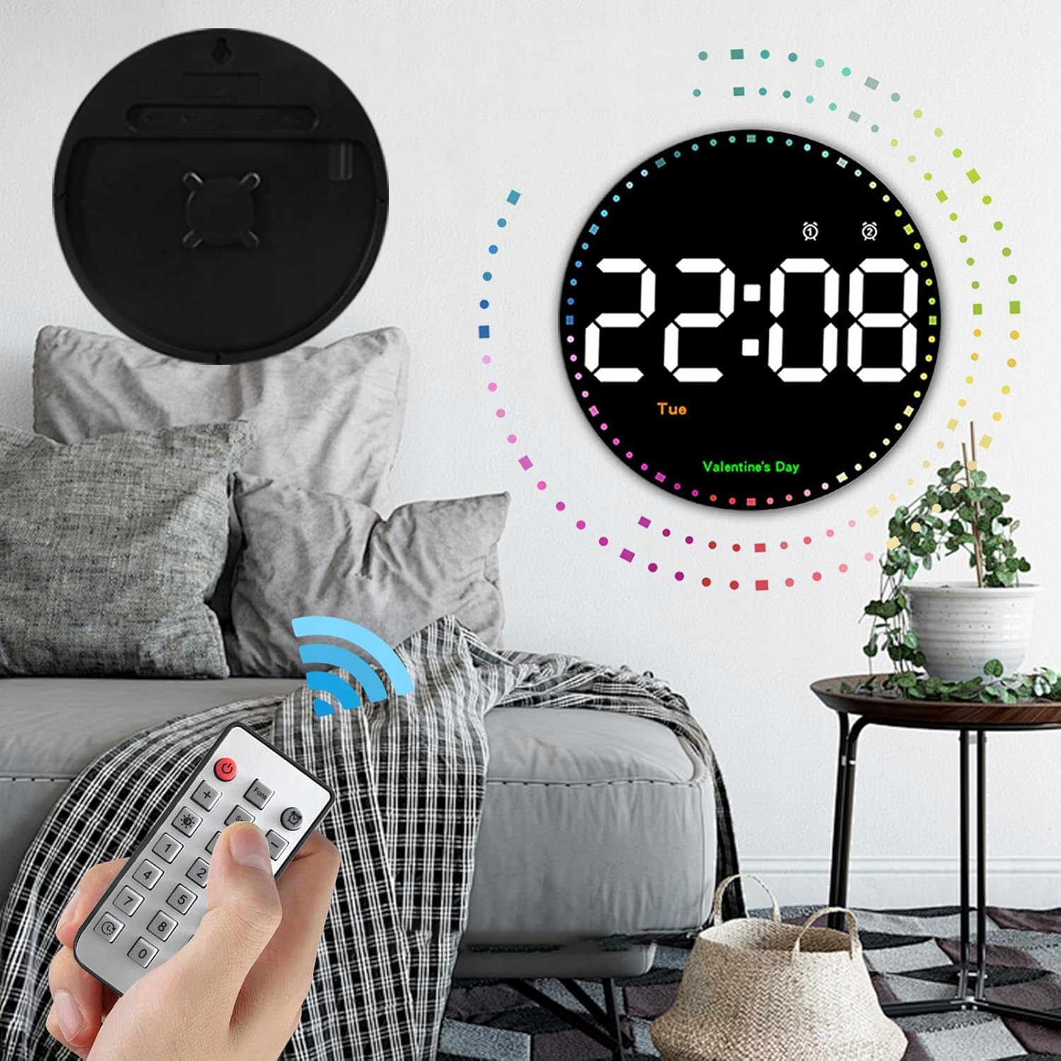 - The image may have: the text above is "Check the hour in the room anywhere, the digital wall clock has two display modes, one displays only an hour, the other displays the time-time-data-taporine series.