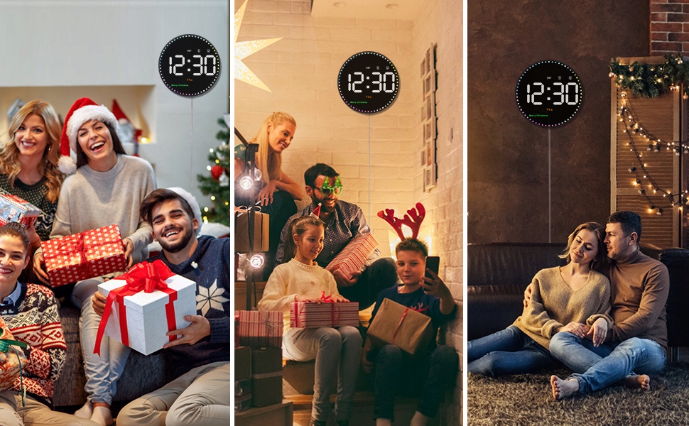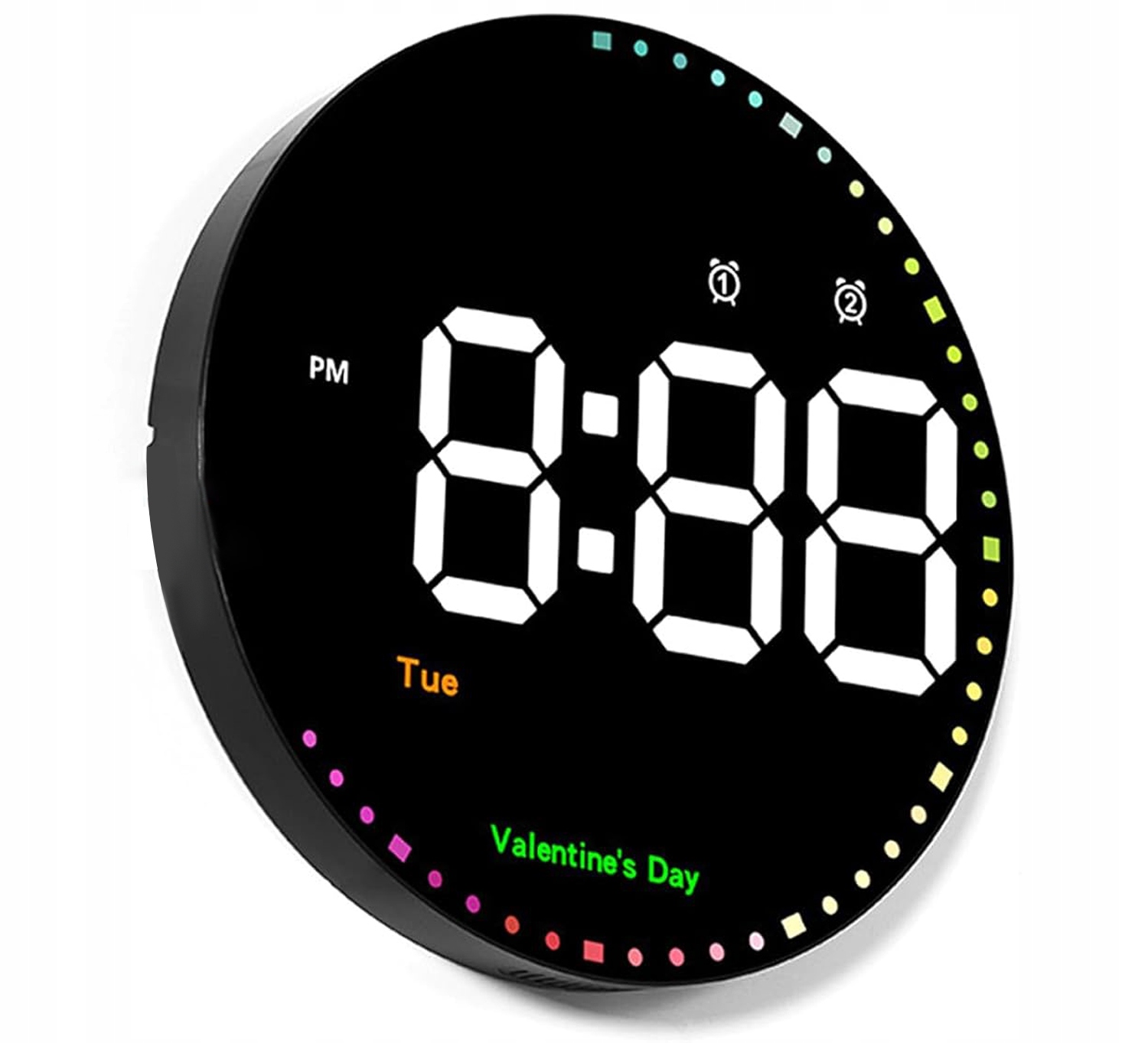 - Точки разделены разными цветами. Цифровые будильники обеспечивают праздничные праздники по случаю Дня святого Валентина, Рождества и Нового года.