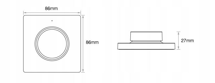 - Размеры: 86x86x27 мм