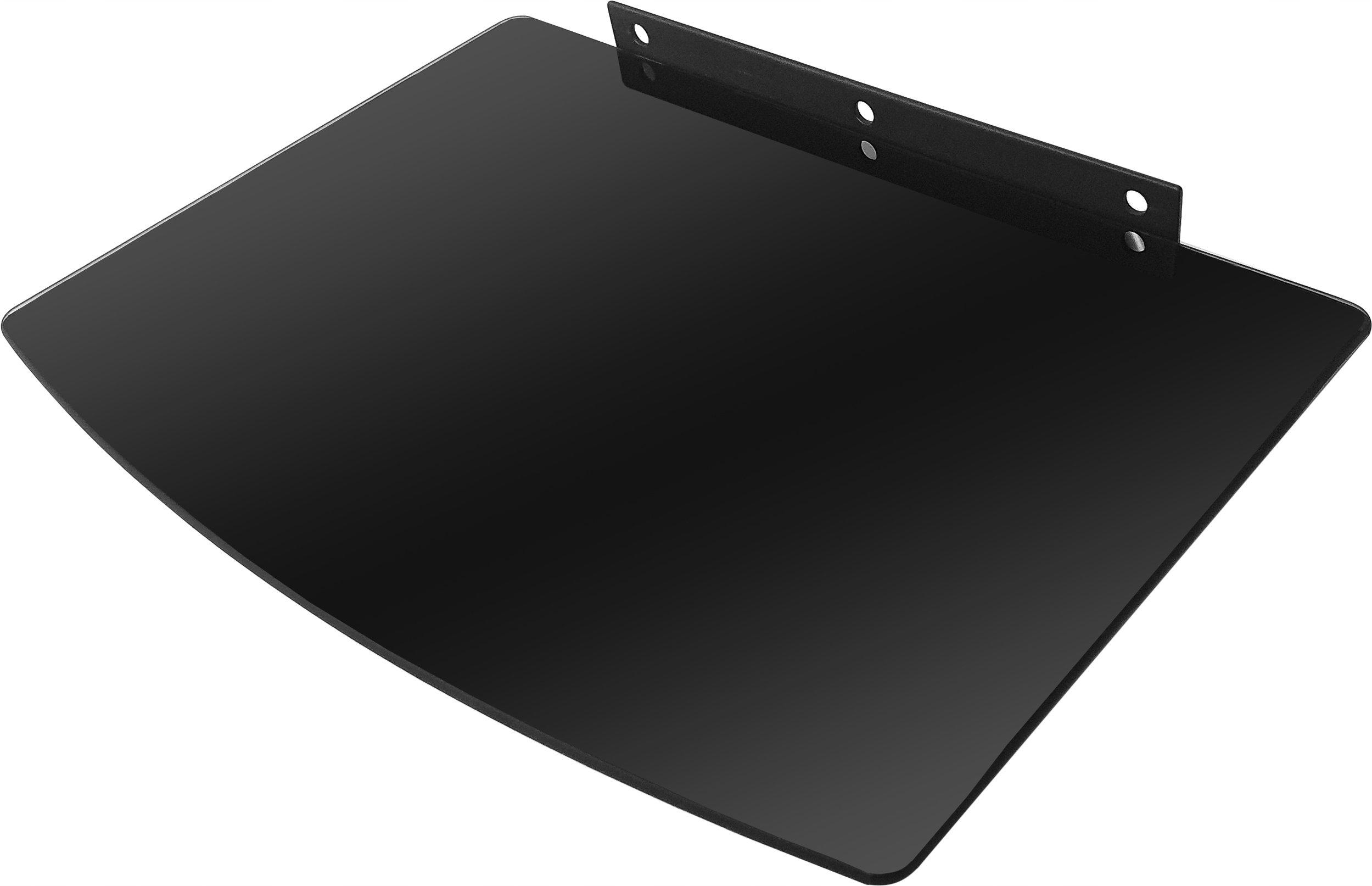 Стеклянная полка для установки под/над телевизором, предназначена для центральной колонны. Каркас выполнен из металла, а пластина – из черного закаленного стекла. В комплект входят крепежные винты и втулки.