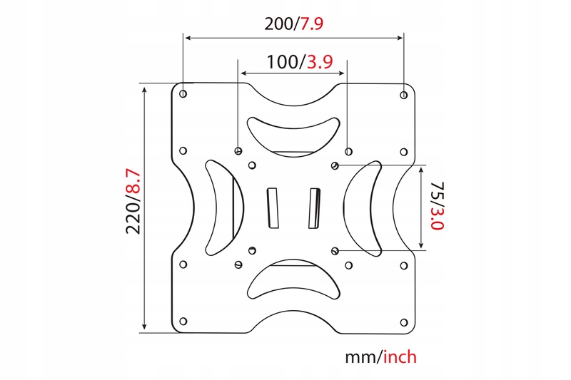 - Адаптировано к стандартному расстоянию VESA 75 x 75, 100 x 100, 200 x 100 и 200 x 200 мм.