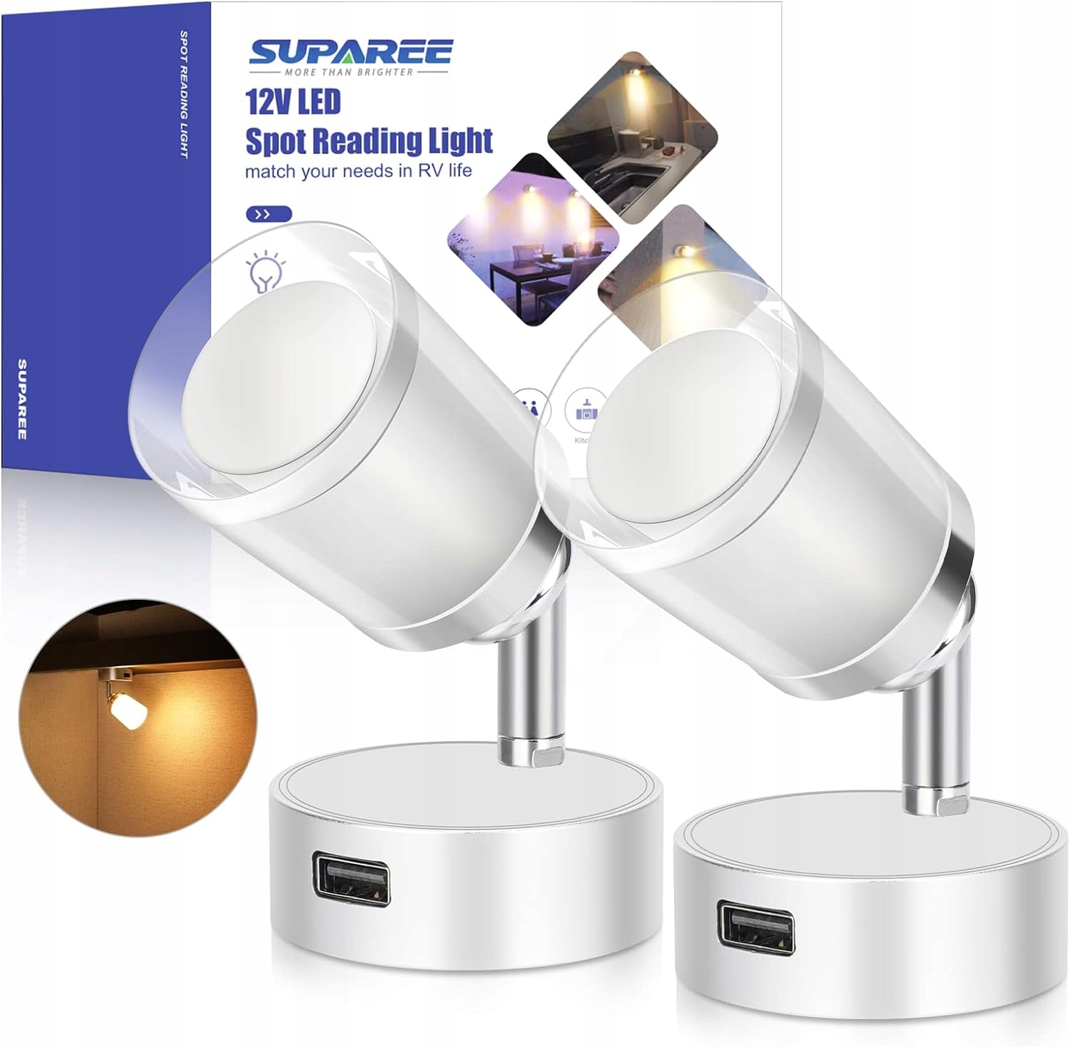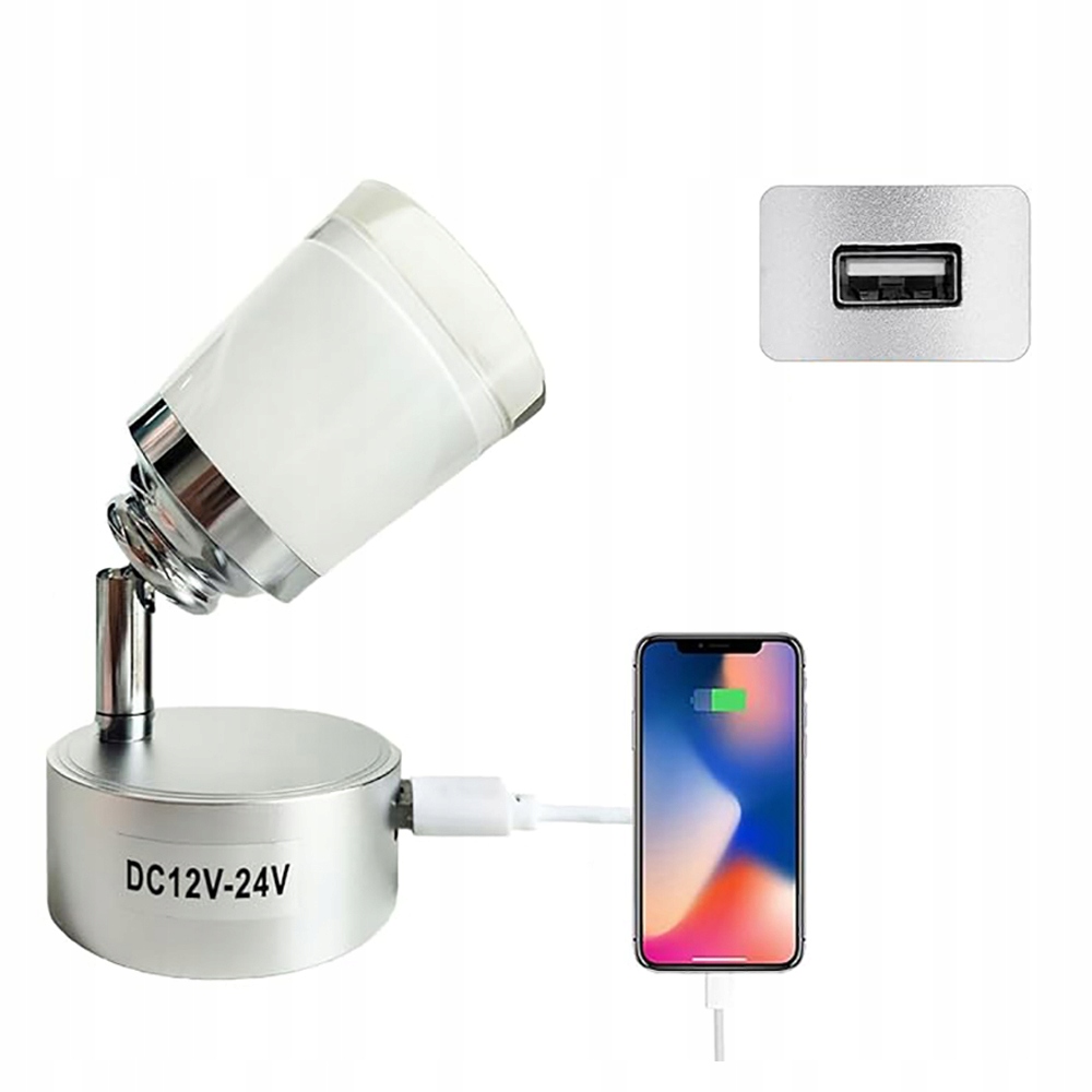 В корпусе светильника имеется USB-порт. Вы также можете заряжать свои электронные устройства через этот порт при использовании светодиодной лампы для чтения 12 В.