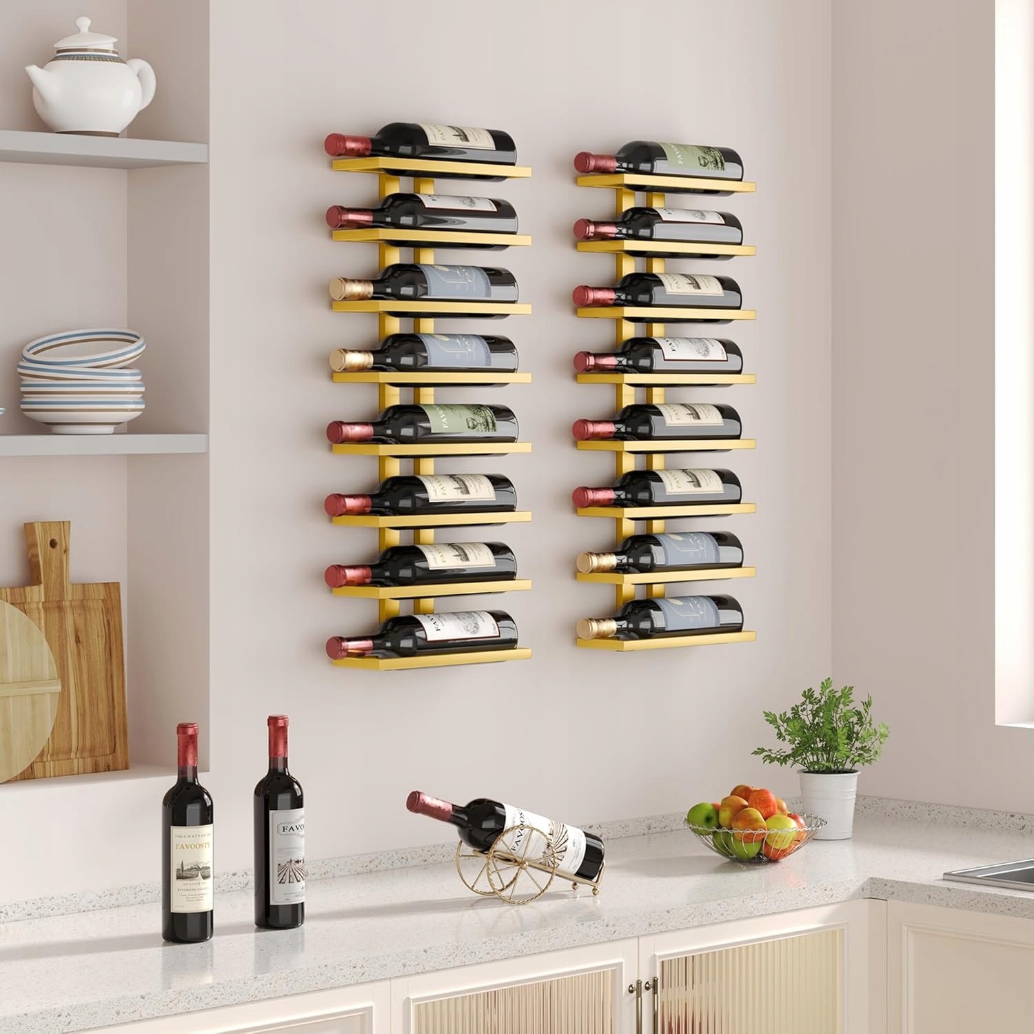 FAVOOSTY – Настенная винная полка, 8 ярусов | Золотая металлическая полка для бутылок | Современный дизайн