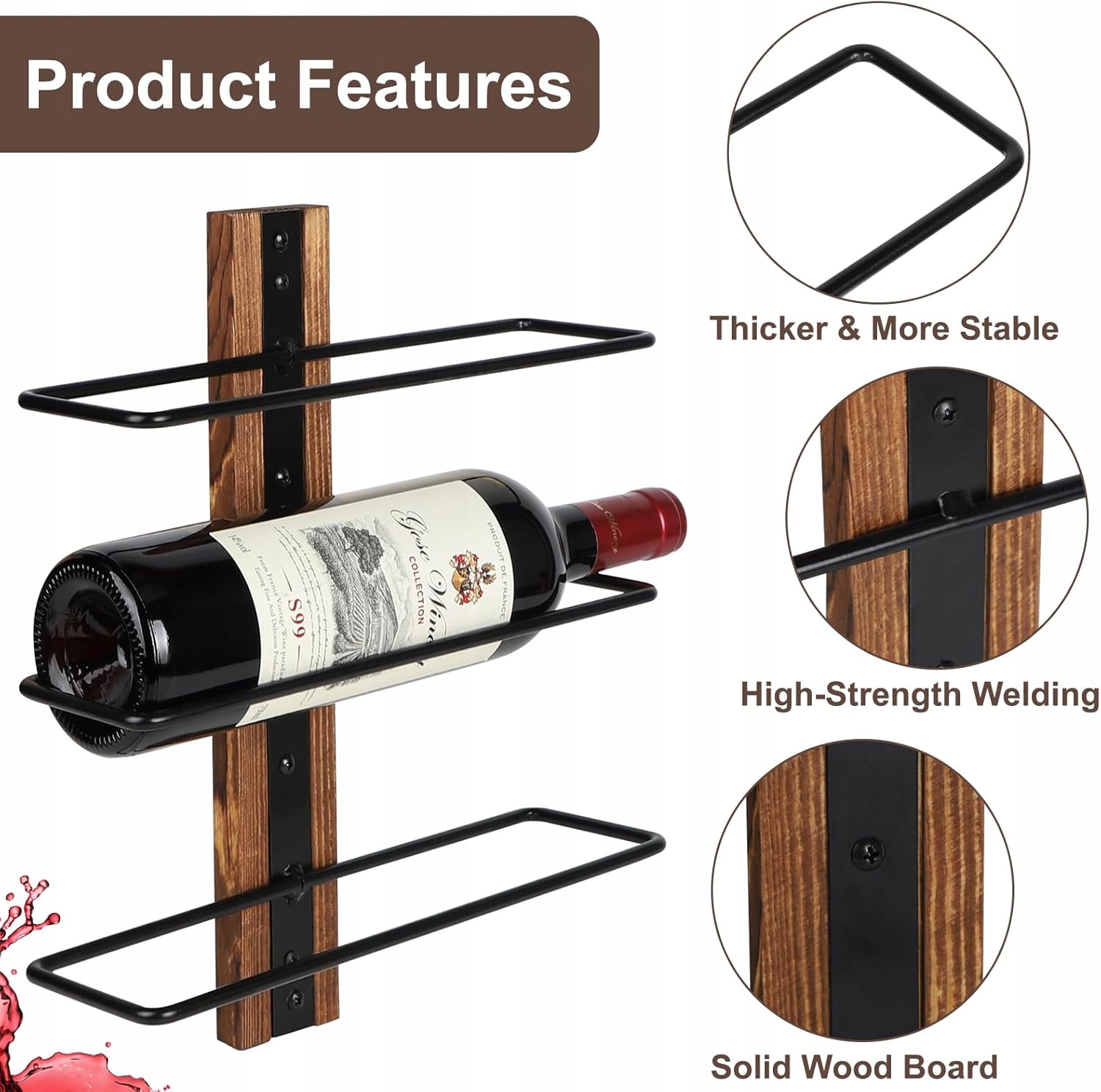 Стильный и прочный винный стеллаж DBREAKS представляет собой идеальное сочетание функциональности и дизайна. Изготовленный из толстого металла и дерева, он отлично смотрится на кухне, в гостиной, подвале или баре. В нем можно разместить 9 бутылок вина (3 полки по 3 бутылки), гарантируя безопасное и элегантное хранение ваших любимых напитков.