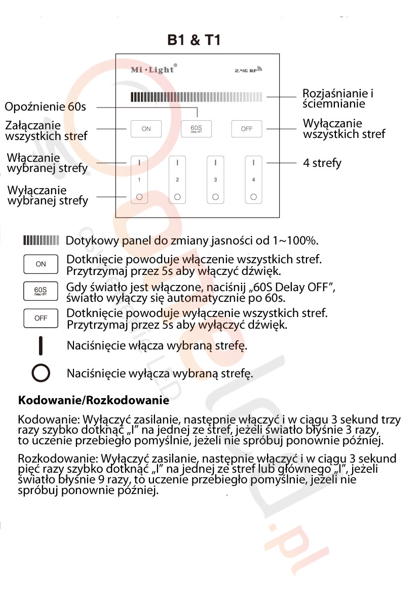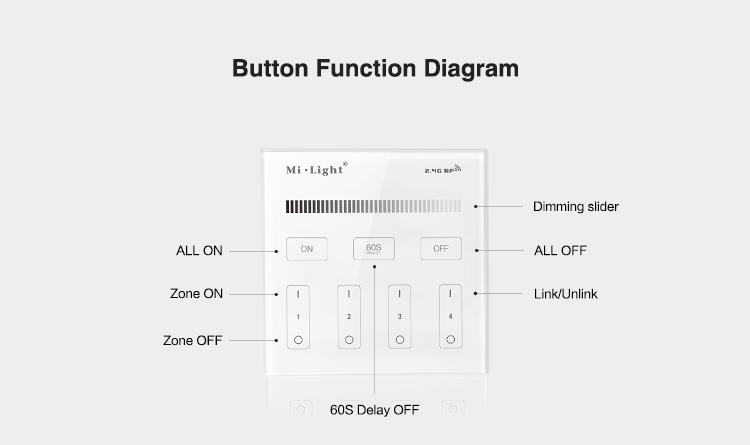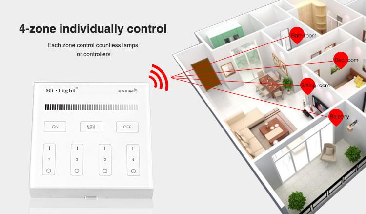 Беспроводной сенсорный контроллер B1, на батарейках 2xAAA 3В, 4-зонный диммер MONO Mi.Light, стекло, настенный
