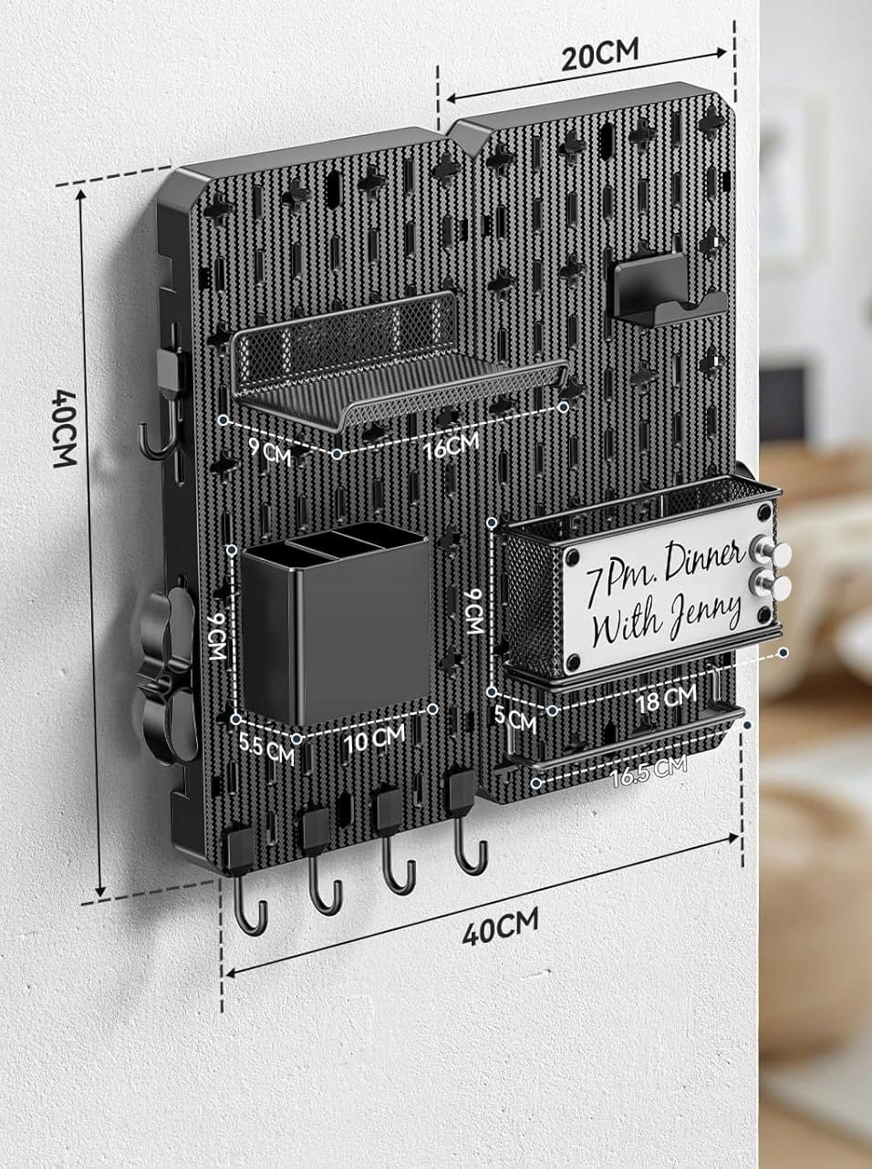 Стильный настенный органайзер – идеальное решение для людей, которые хотят поддерживать порядок у входной двери и избежать утреннего хаоса. Одно изделие объединяет в себе целых 7 функций, обеспечивая удобное хранение всех самых важных вещей, необходимых перед выходом из дома.