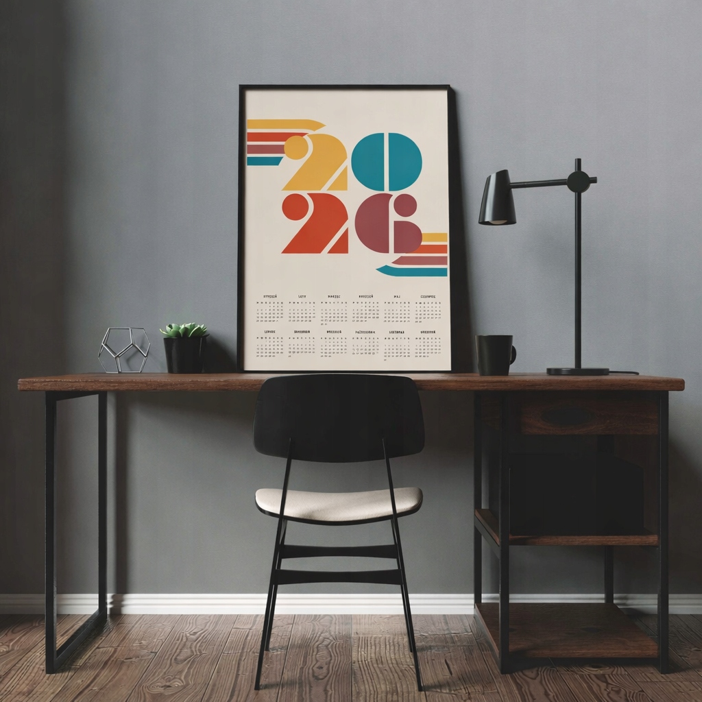 ПОСТЕР НАСТЕННЫЙ КАЛЕНДАРЬ 30х40 ГОД 2026 РЕТРО ПОСТЕР ПРЛ В СТИЛЕ БАУХАУС