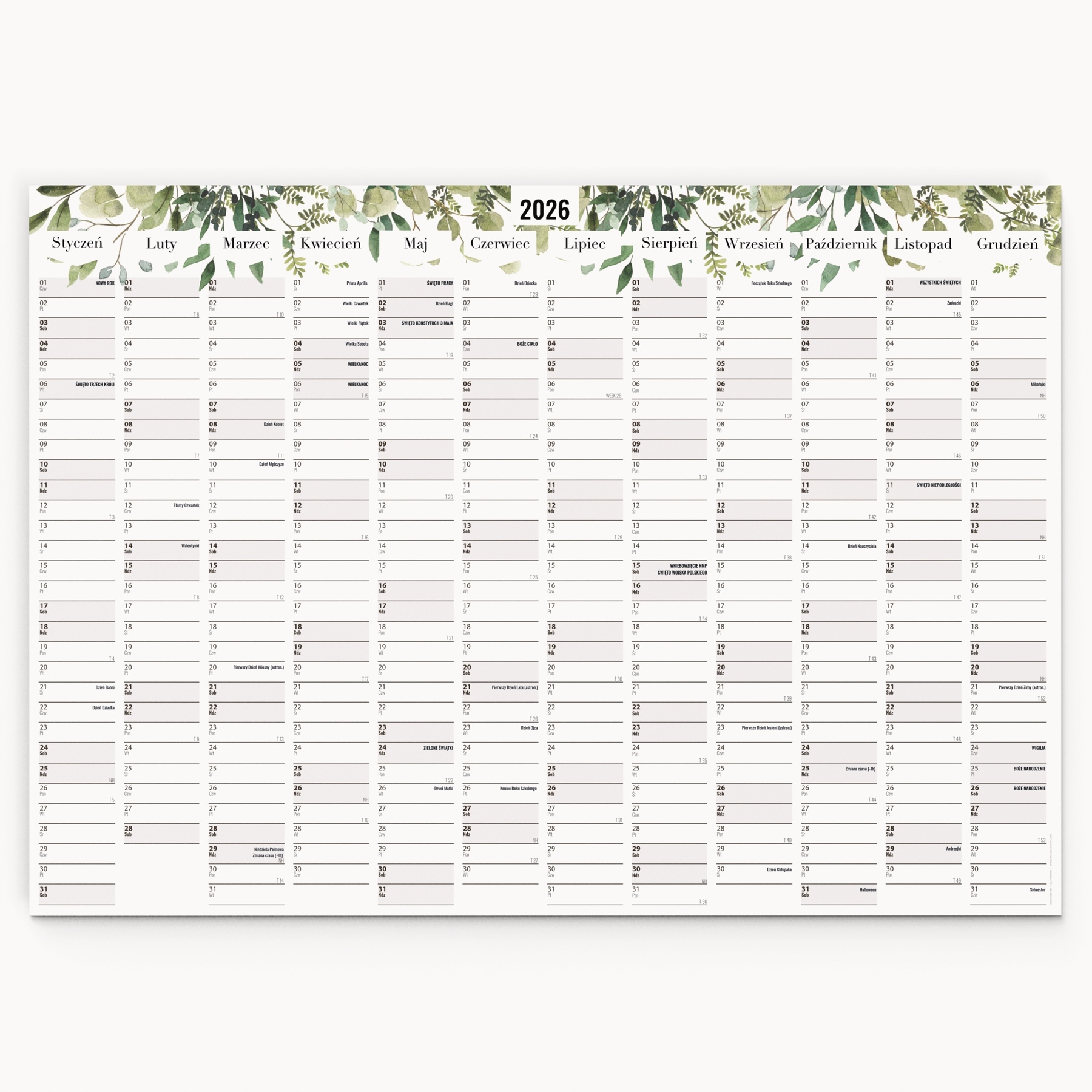 Планировщик стен на 2026 год — Календарь польских праздников, вс. Коммерческий А2