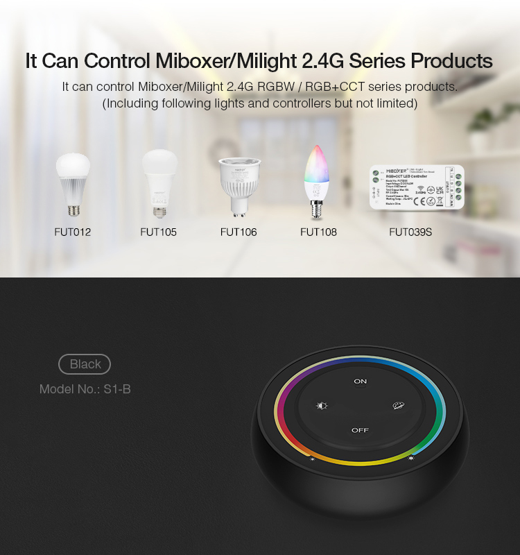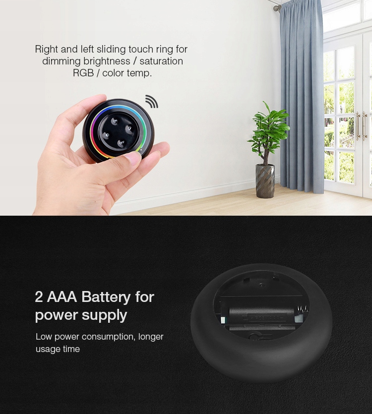 Настенный пульт дистанционного управления Milight MiBoxer RGBCCT S2-W черного цвета.