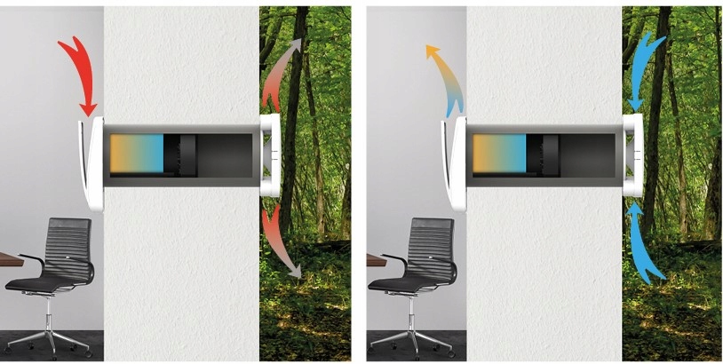 Зональный рекуператор AIRDOT эффективно вентилирует, удаляет лишнюю влагу и контролирует ее уровень в помещении. Он работает циклически в функции приточно-вытяжной вентиляции. Подает свежий воздух, нагретый ранее накопленным теплом.
