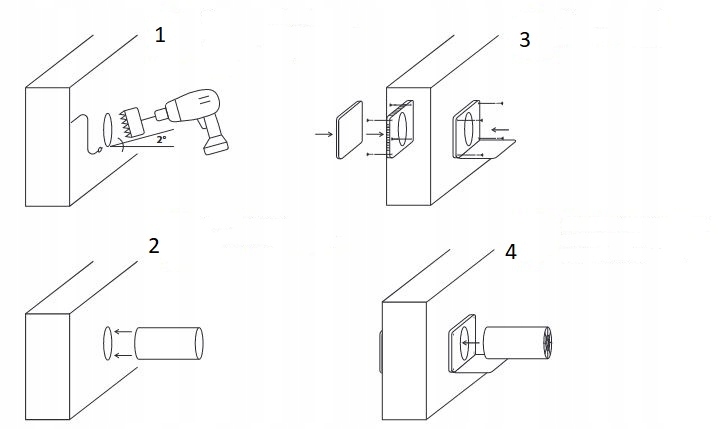 1. Просверливаем в стене отверстие диаметром Ø D=160мм под углом 2° и подключаем кабели.
