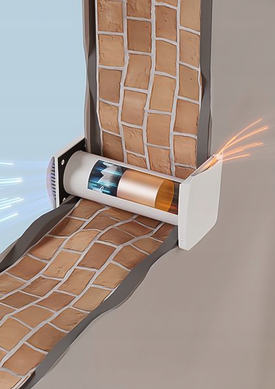 Настенный рекуператор KERS+25 оснащен керамическим регенеративным теплообменником, который аккумулирует тепло при отводе теплого воздуха из помещения. Затем тепло из теплообменника выделяется для нагрева холодного воздуха, подаваемого снаружи.
