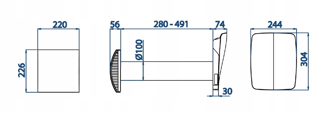 Компактний настінний рекуператор KERS+25 100 дистанційне керування 25м3/год датчик вологості
