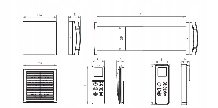 Магнит позволяет прикрепить пульт дистанционного управления к держателю. Контроллер оснащен ЖК-дисплеем для визуализации настроек, передаваемых на устройство; При каждом нажатии сенсорной кнопки настройка на ЖК-дисплее будет передаваться на устройство. Инфракрасный приемник расположен с левой стороны вентиляционной установки (Е): рекомендуется направлять пульт на приемник, когда необходимо передать какую-либо настройку.