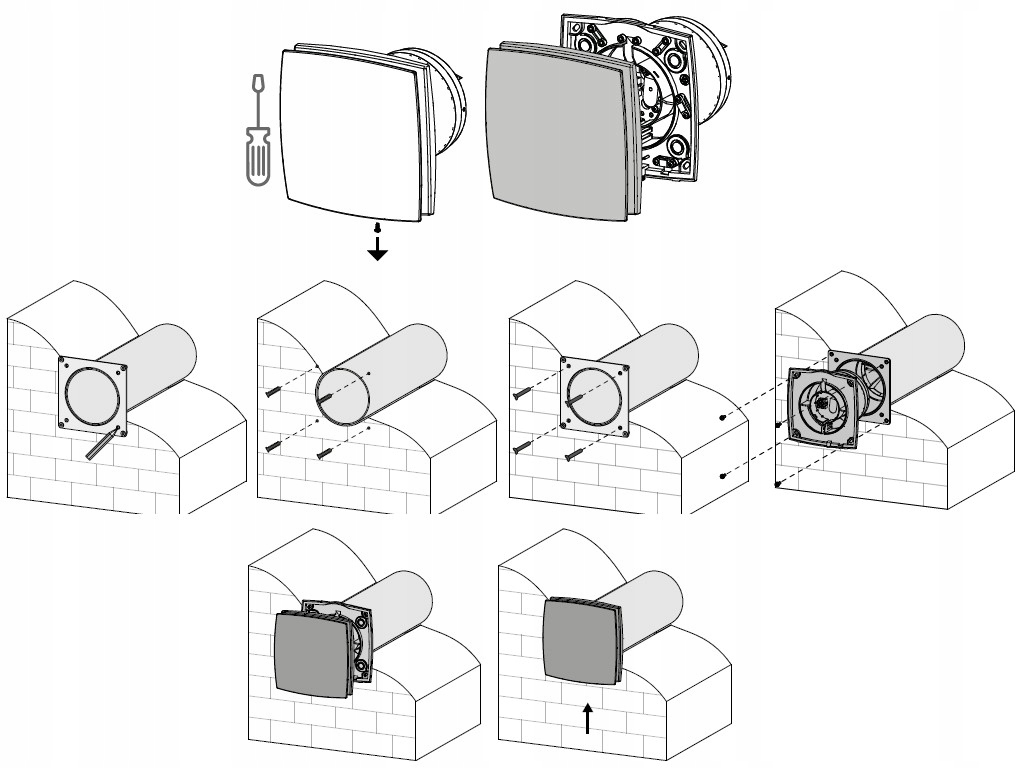 - Монтаж во внешней стене, возможность удлинения воздуховода в случае более толстой стены (>380 мм).