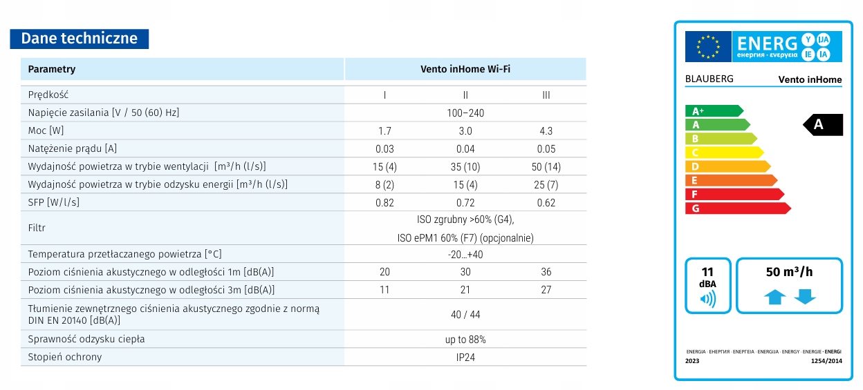 - КПД в режиме рекуперации энергии: 50 [м3] /ч]