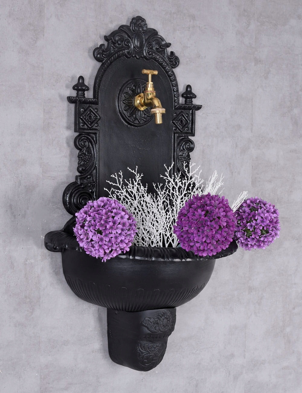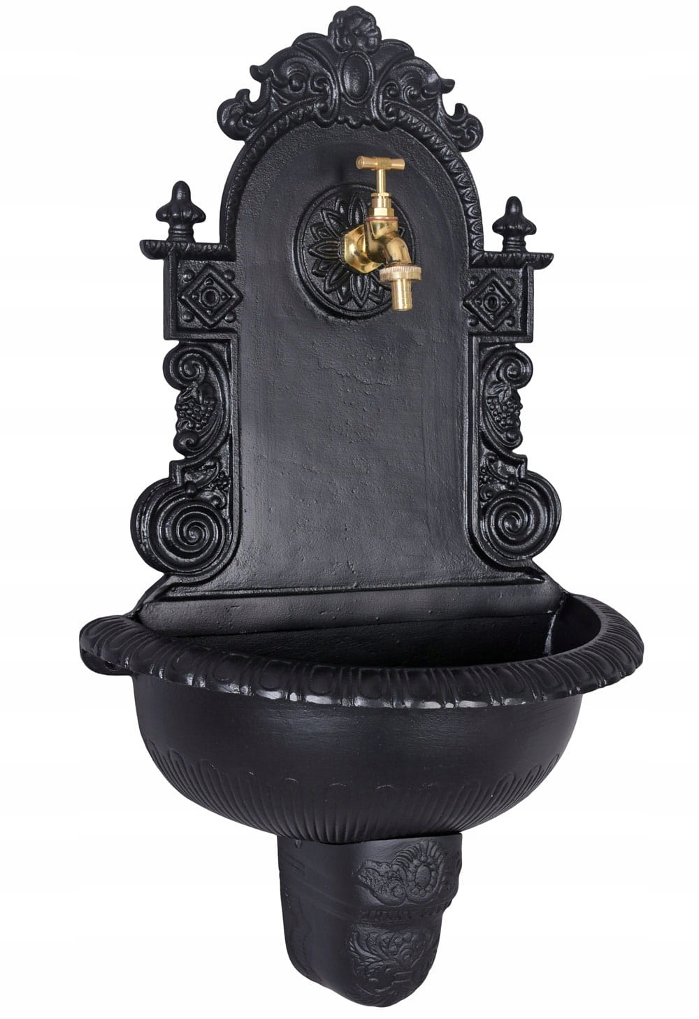 Хотите добавить элегантности и очарования в свой сад? Наш стильный настенный фонтан обязательно оправдает ваши ожидания. Созданный с вниманием к деталям, этот черный фонтан в стиле ренессанс с блестящим золотым краном привлечет внимание и придаст гармоничный характер вашему окружению.