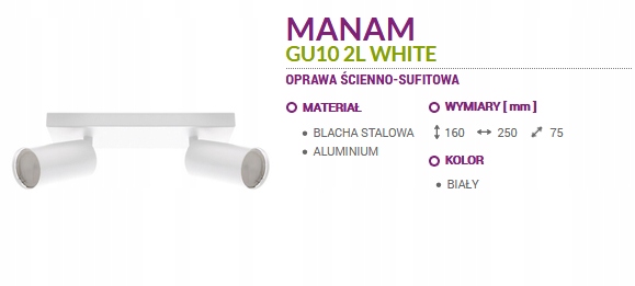 Светильник настенно-потолочный MANAM 2X GU10 WHITE