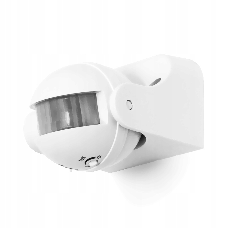 Датчик движения с двумя параметрами, настраиваемыми ручками: светочувствительность в диапазоне 3-2000 люкс и диапазон срабатывания датчика от 10 с до 7 мин. PIR-датчик устанавливается на стену. Датчик обнаруживает движение в радиусе не более 12 м и должен быть установлен на высоте не более 2,5 м. Существует практическое решение, позволяющее существенно сэкономить на энергопотреблении источника света. После обнаружения движения датчик активирует устройство, к которому подключен датчик. Датчик может быть установлен внутри или снаружи помещения (класс IP44).