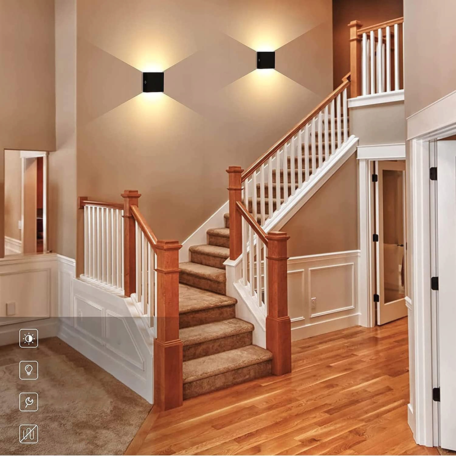 Настенный светильниктеплый белый свет 3000К, ровное и стабильное освещение, отсутствие бликов, создает теплую и комфортную атмосферу. <б>12*12*5см. Максимальная мощность: 6 Вт. Напряжение: 5 В/2 А.